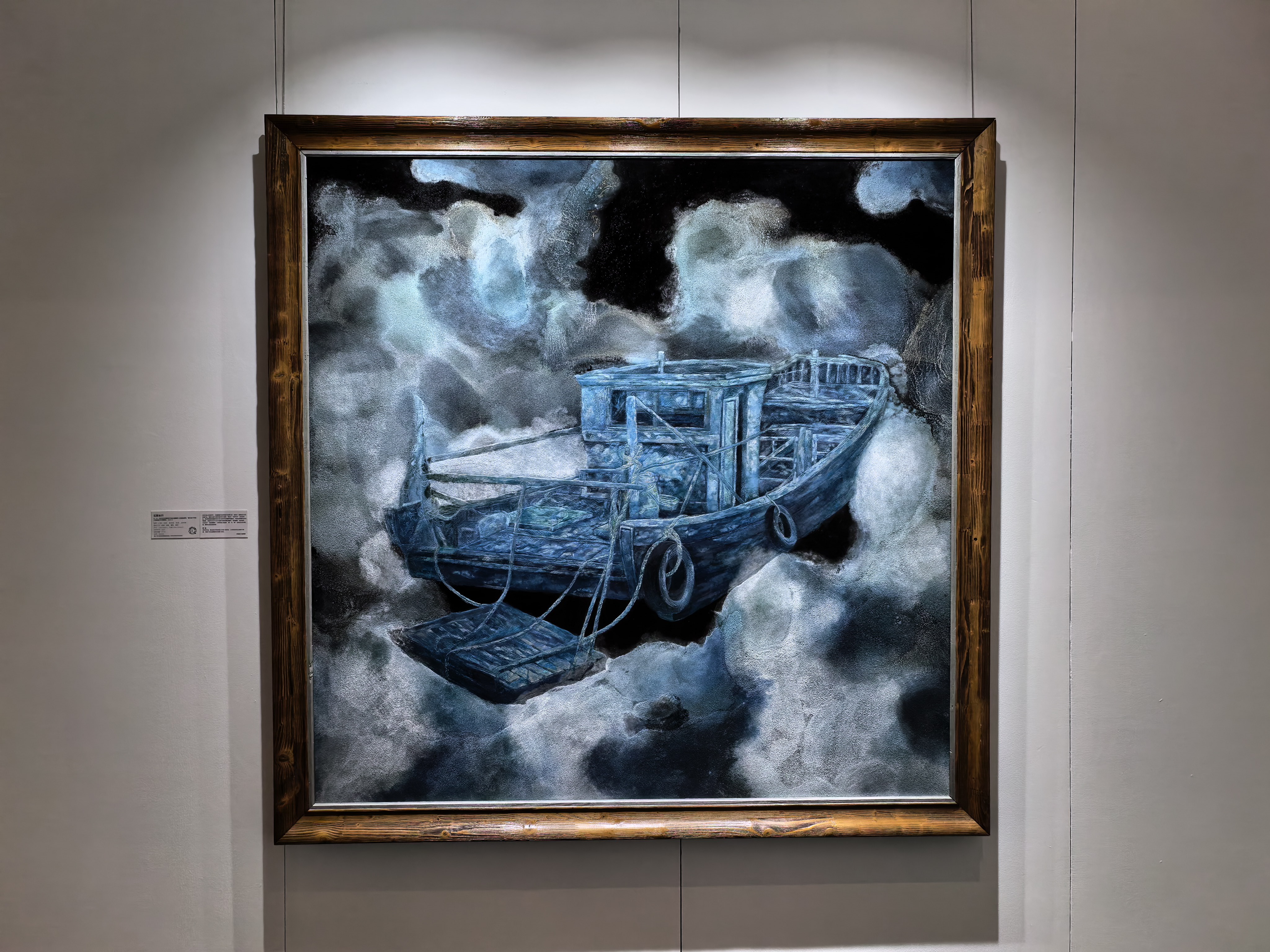 那幅以渔船为主题的漆画,则带着一种沧桑与厚重。画面中的渔船,在云雾缭绕的背景下,显得孤独而又坚韧。大漆的纹理和质感,仿佛诉说着渔船经历的风风雨雨,以及渔民们生活的艰辛与不易。这幅作品不仅仅是对渔船这一物象的描绘,更是对一种生活方式的记录和对一种精神的礼赞。它让我感受到大漆艺术在传达情感和思想时的深沉力量,能够引发观者内心深处的共鸣。