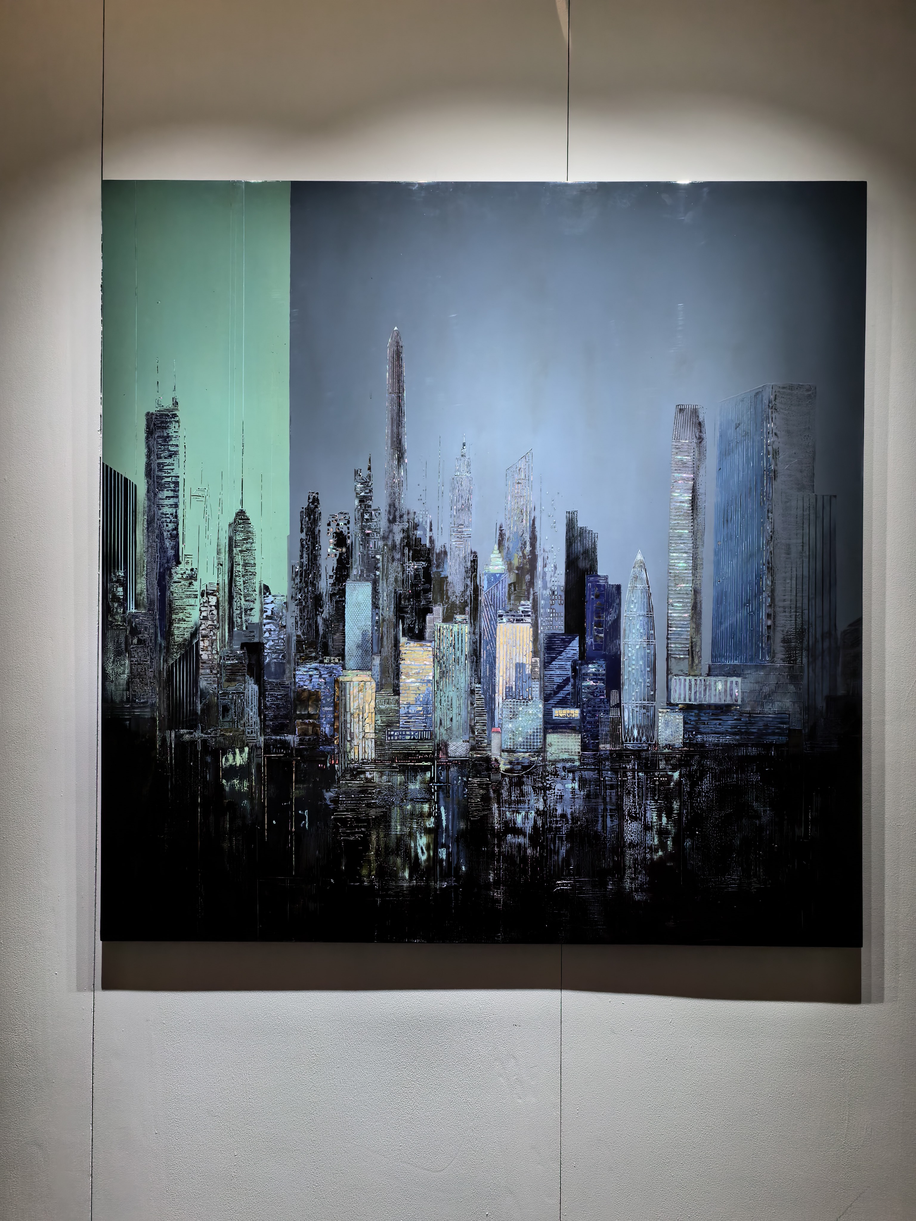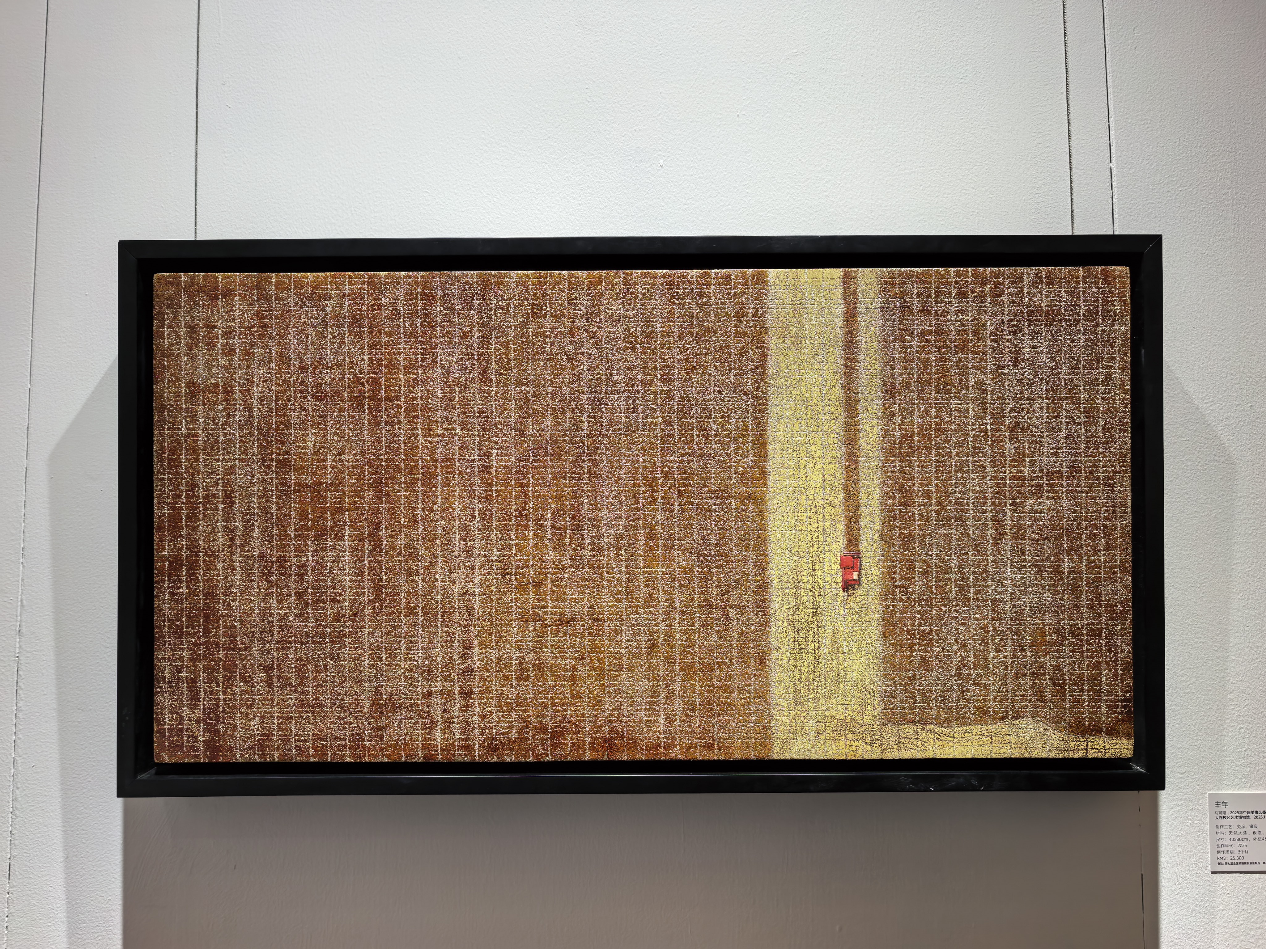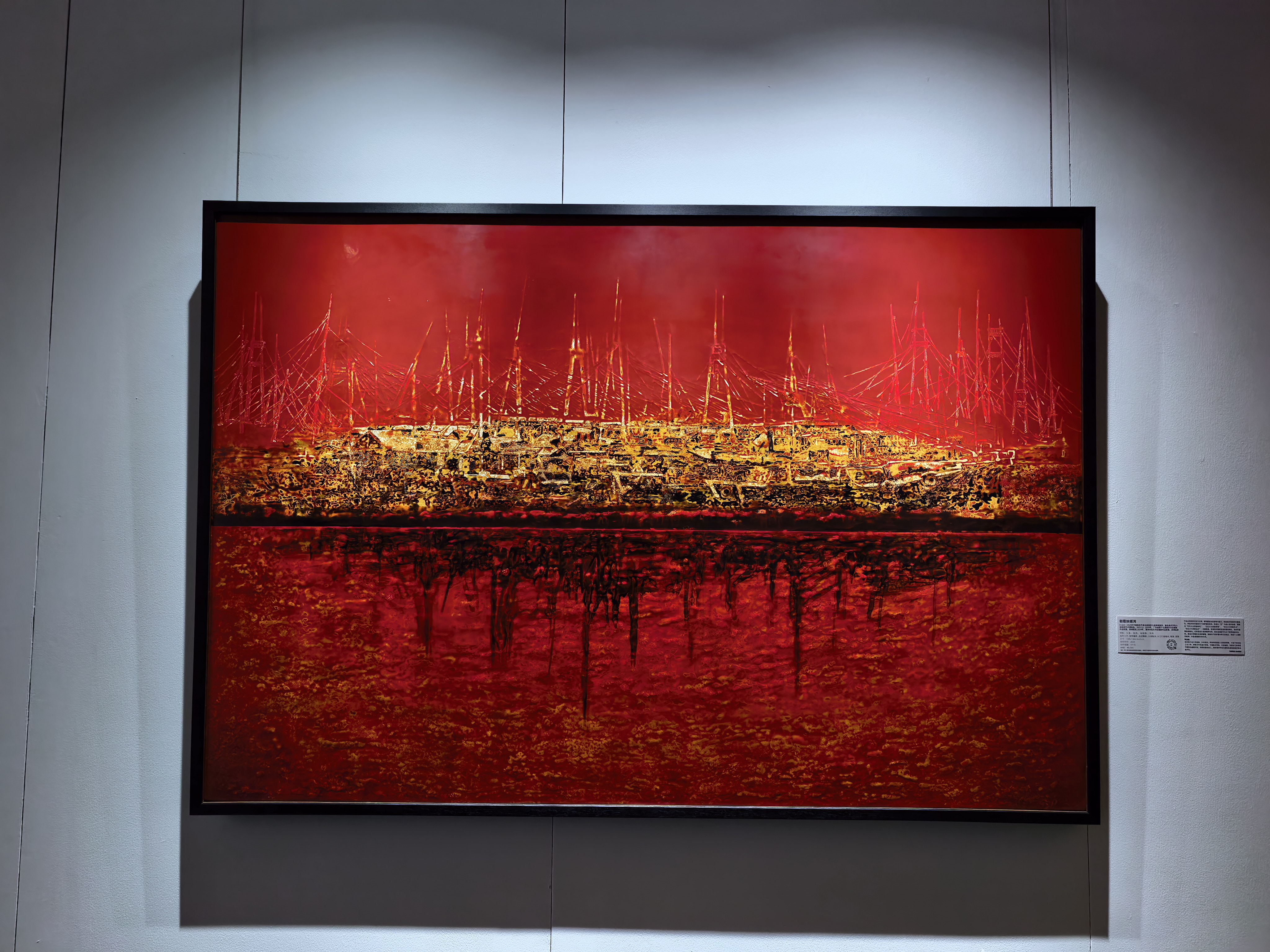 步入展厅,那幅以现代都市天际线为题材的漆画率先映入眼帘。高耸入云的摩天大楼,在漆的独特质感下,呈现出一种冷峻而又神秘的气息。大漆的深沉与金属材料的闪耀相互交织,仿佛是现代文明与传统技艺的碰撞与融合。在这繁华都市的影像背后,我看到的不仅是艺术家对当代生活的敏锐洞察,更是大漆艺术在表现现代题材时的无限可能。它打破了人们对漆艺传统、古朴的固有印象,以一种全新的视觉语言,展现出大漆与时代对话的活力。