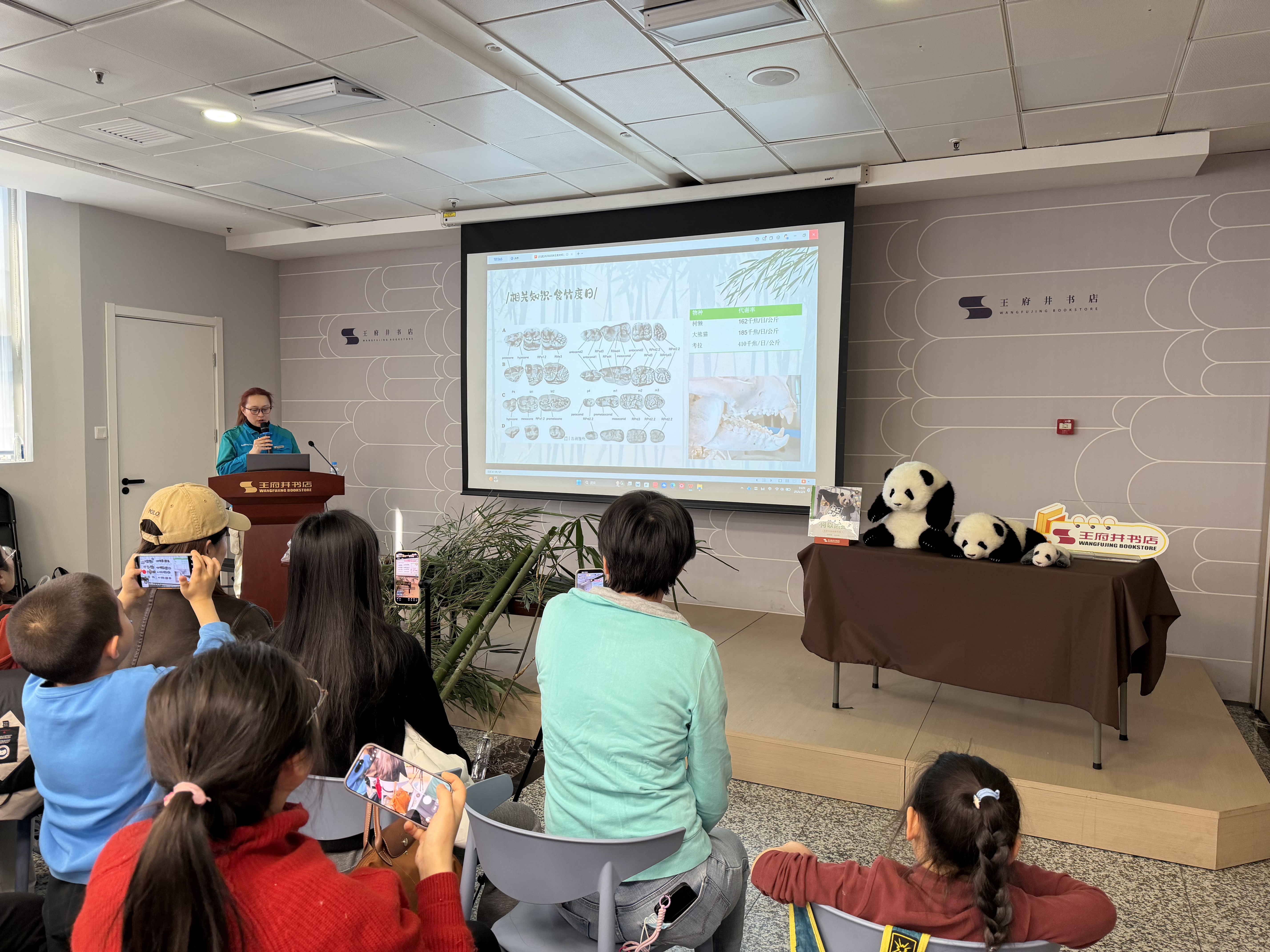 分享会现场气氛热烈,吸引了众多大小读者。活动特别邀请了该书编写组成员及责任编辑来到现场,与读者们交流创作心得,分享大熊猫科普知识。北京动物园饲养队技术员张媛媛现场展示了国宝大熊猫喜爱的特色食物,并详细讲解了它们的生活习性,将书本知识与实际养护工作相结合,为观众带来了直观而深入的体验。