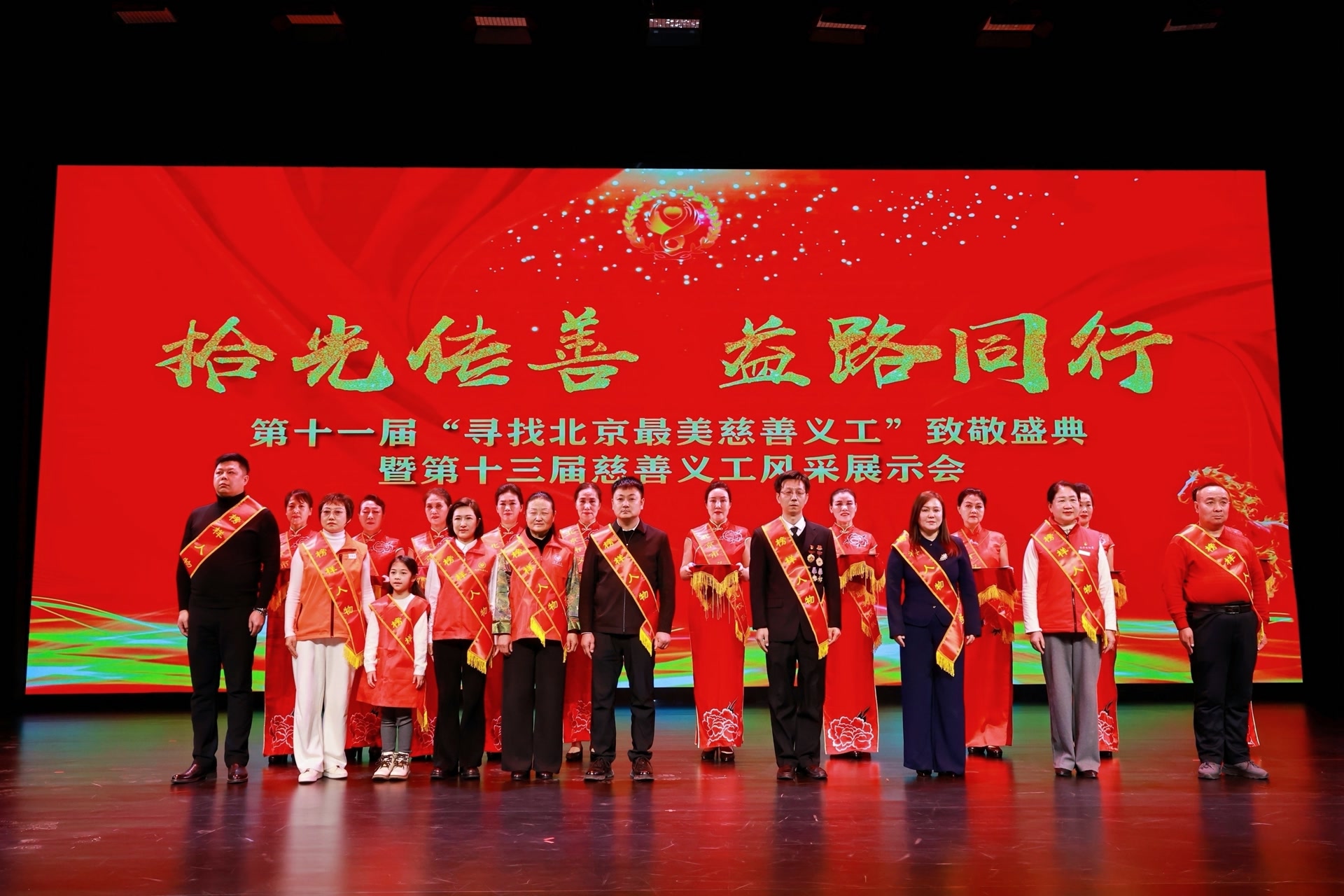 本次活动以“拾光传善 益路同行”为主题,旨在礼赞平凡善举,彰显榜样力量,弘扬新时代义工精神。活动现场,牛玉学、赵欣、凯丽娜·改热、孙运红、陈前程、王金珝兮、季国军、车明泽、周健、石颖10人荣获第十一届“北京最美慈善义工”榜样人物;石油大院志愿家庭服务队、北京夏虹公益促进中心、北京天坛琴之声民乐团、北京反诈童盟、凉小鸭志愿服务队、中国宋庆龄青少年科技文化交流中心志愿服务总队、北京市房山区爱国拥军促进会、爱暮同行志愿服务队、北京市12355注册计时咨询热线志愿者服务队、首都老兵海淀区田村路街道志愿服务队10个团体荣获“北京最美慈善义工”榜样团体。这些慈善义工优秀个人和团体,都是在首都公益慈善一线长期默默奉献的先进典型。
