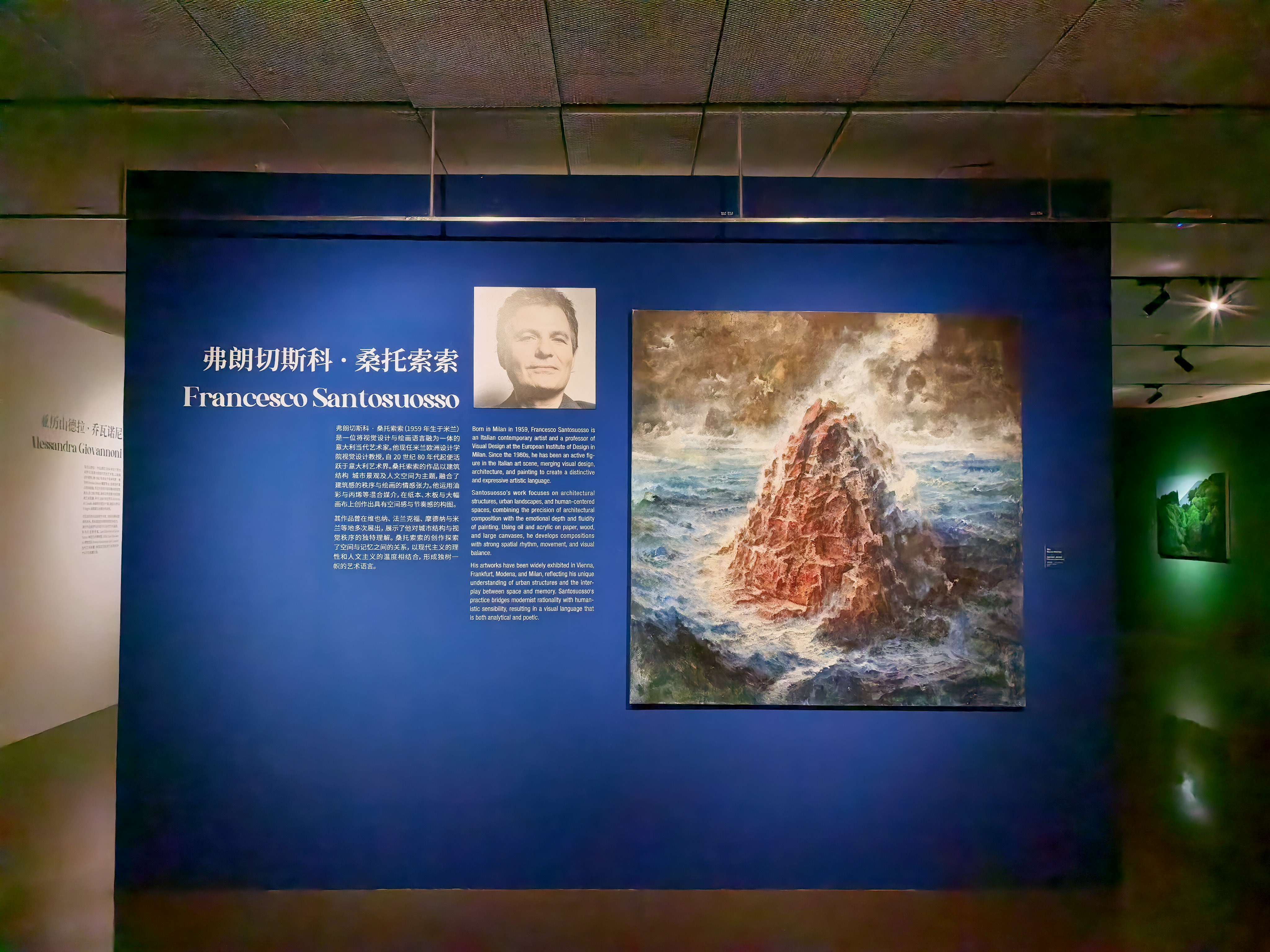 桑托索索是一位将建筑设计与绘画语言融为一体的意大利当代艺术家,现住在米兰,并在欧洲设计学院担任视觉设计教授。他的作品以建筑结构、城市景观及人文空间为主题,融合了建筑感的秩序与绘画的情感张力,展现出独特的艺术风格。我不难想象,他在创作这些作品时,是如何将内心的情感与对自然的敬畏之情倾注于笔端,创造出这一幅幅令人叹为观止的佳作。