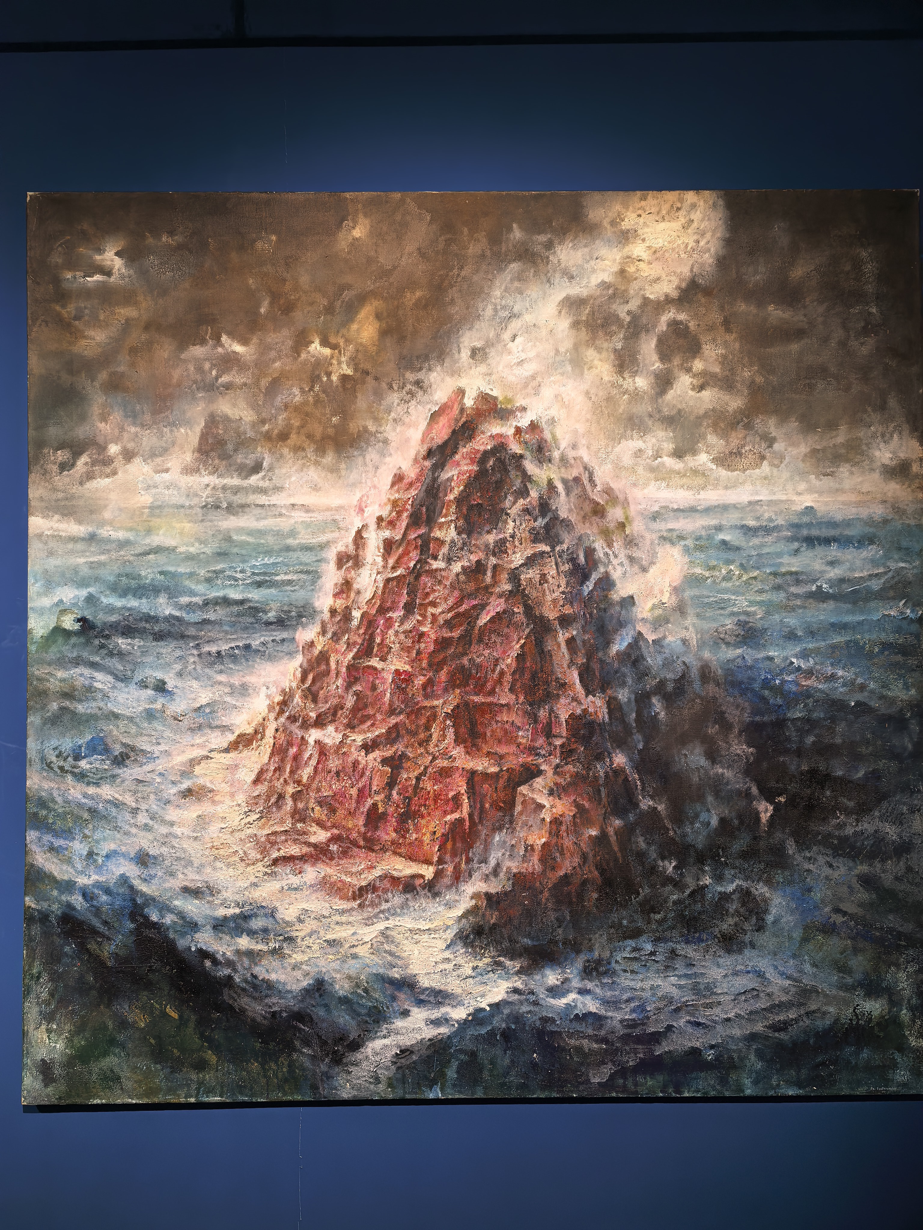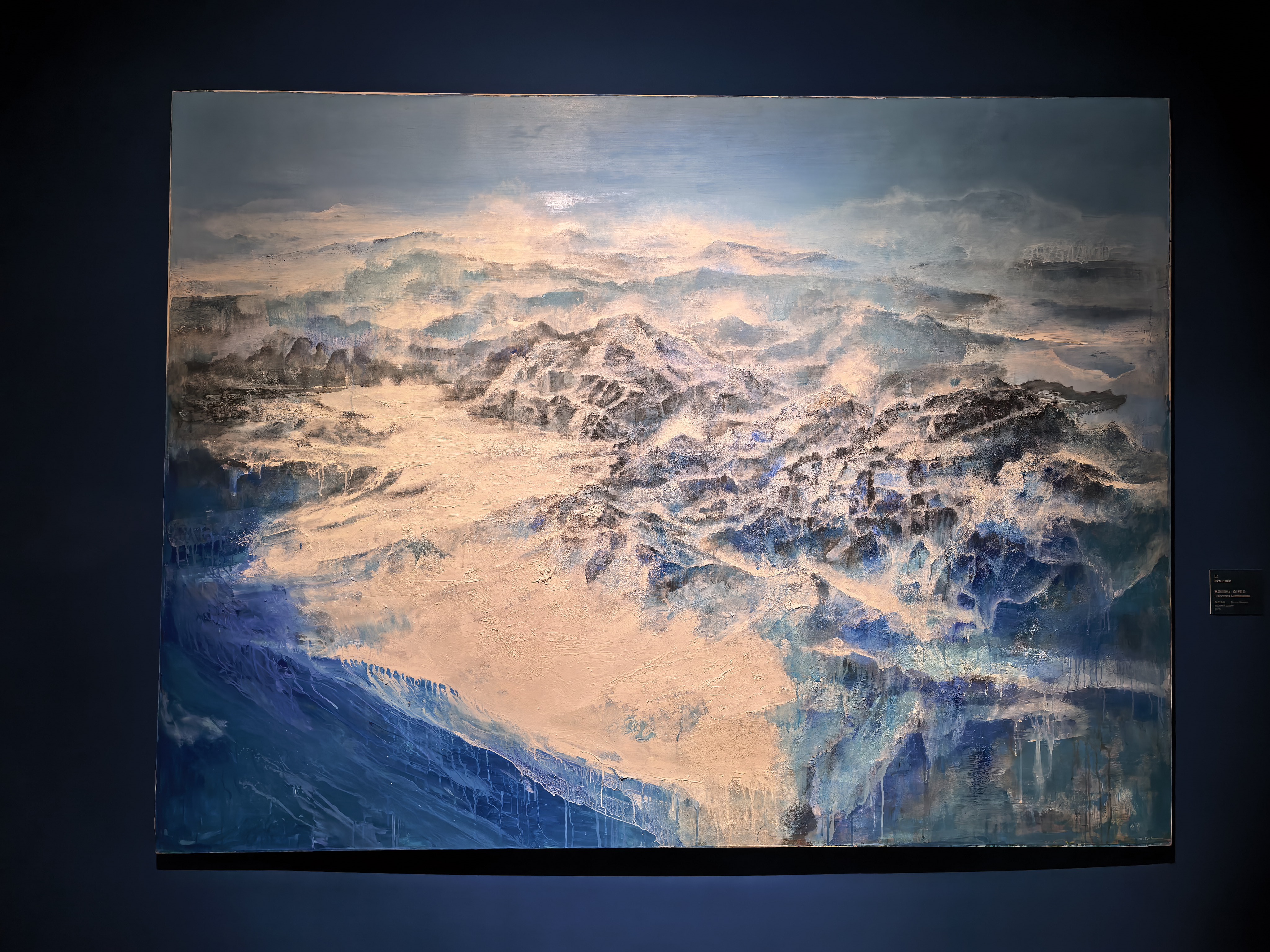 移步换景,另一幅以雪山为主题的画作又让我驻足良久。画面中的雪山巍峨耸立,云雾缭绕,仿佛置身于一个神秘而圣洁的世界。桑托索索用细腻的笔触和柔和的色彩,将雪山的静谧与壮美完美地融合在一起。仿佛能听见那雪山的呼唤,感受到那股来自高处的清冽与纯净。我感受到了宁静与平和,仿佛心灵得到了一次洗礼。