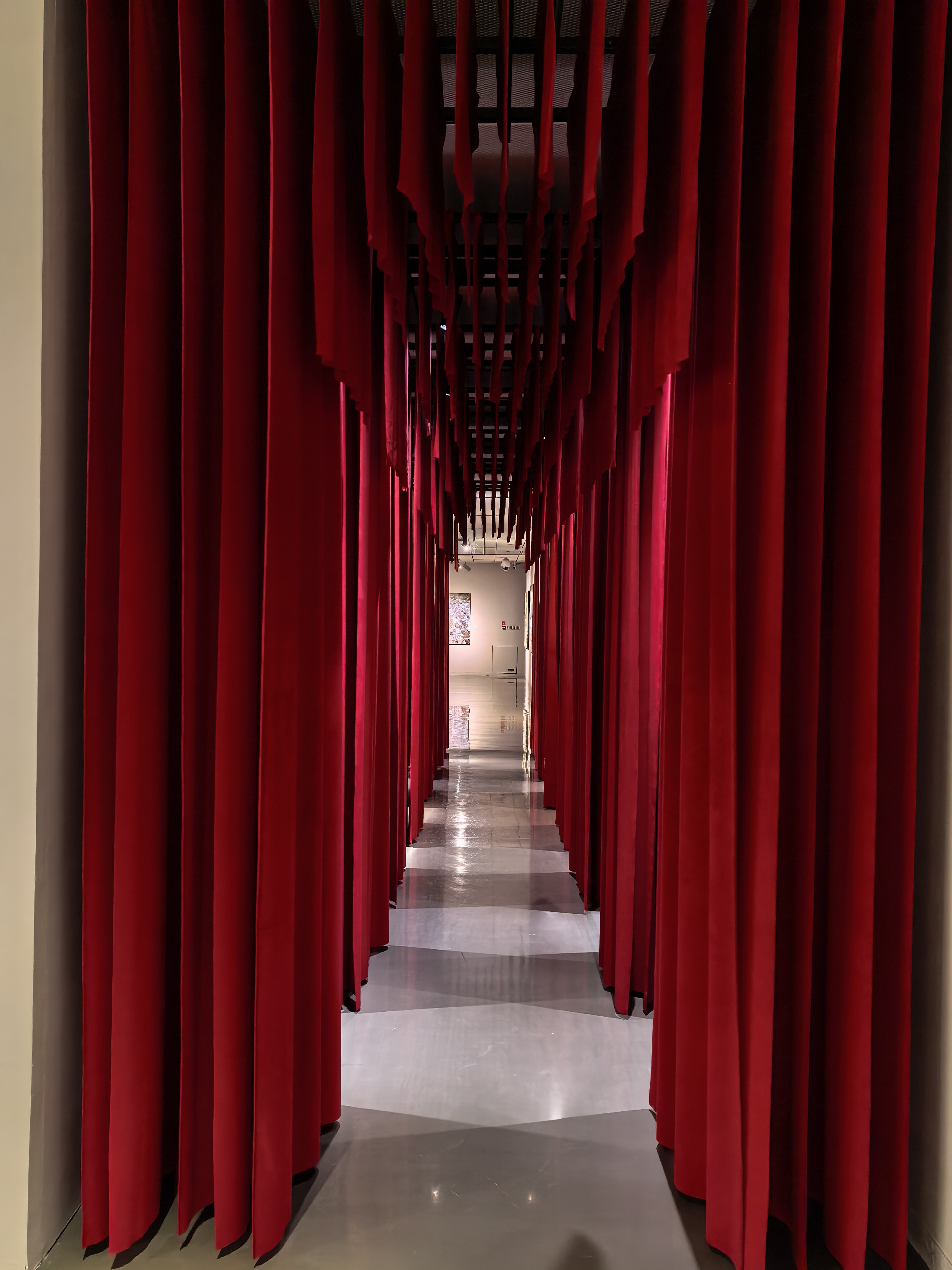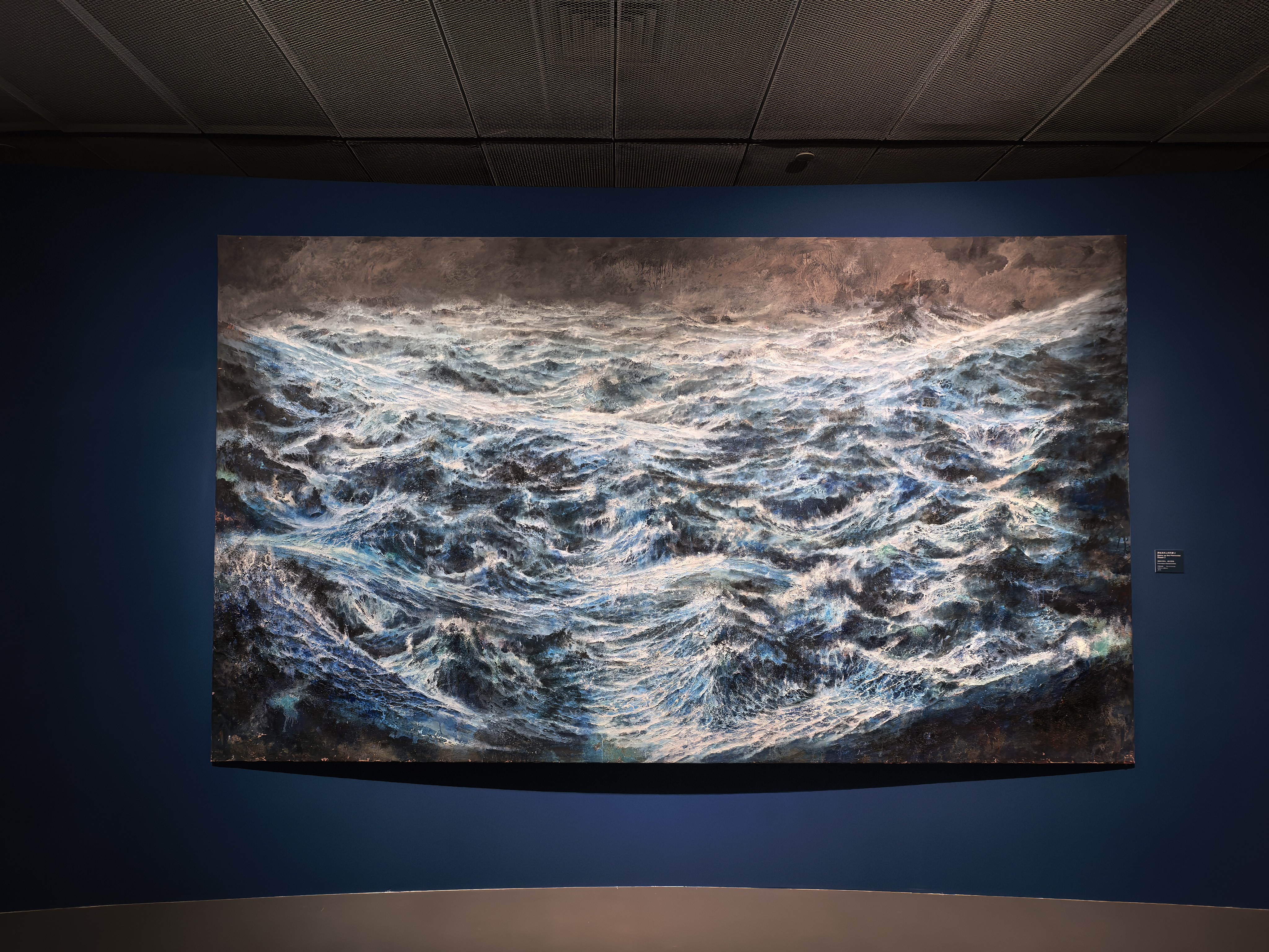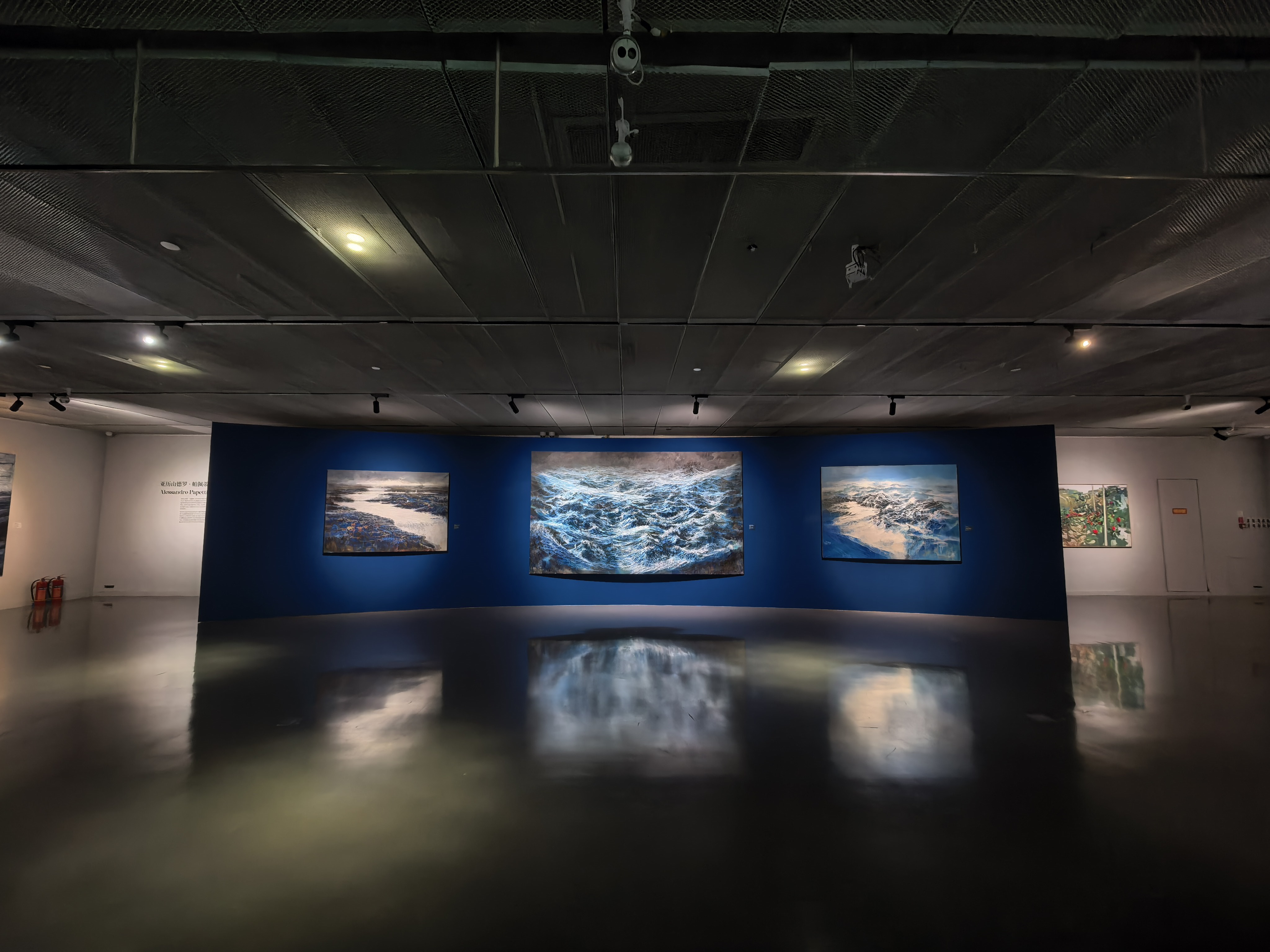 步入展厅,一种静谧而又充满张力的氛围扑面而来。深蓝色的展墙上,悬挂着桑托索索的几幅巨作,每一幅都仿佛是一个深邃的梦境,引人遐想。