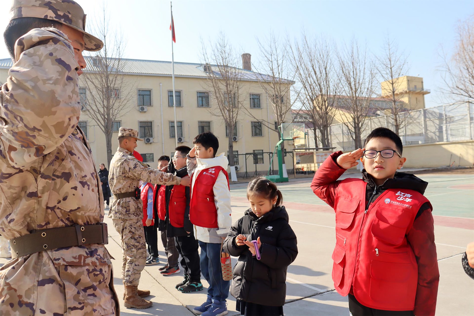 随后,官兵们详细讲解敬礼的动作要领,纠正大家的姿势,教青少年们敬标准的军礼。稚嫩的手掌举起,庄重的姿态定格,每一个军礼都承载着青少年对武警官兵的崇敬之情。