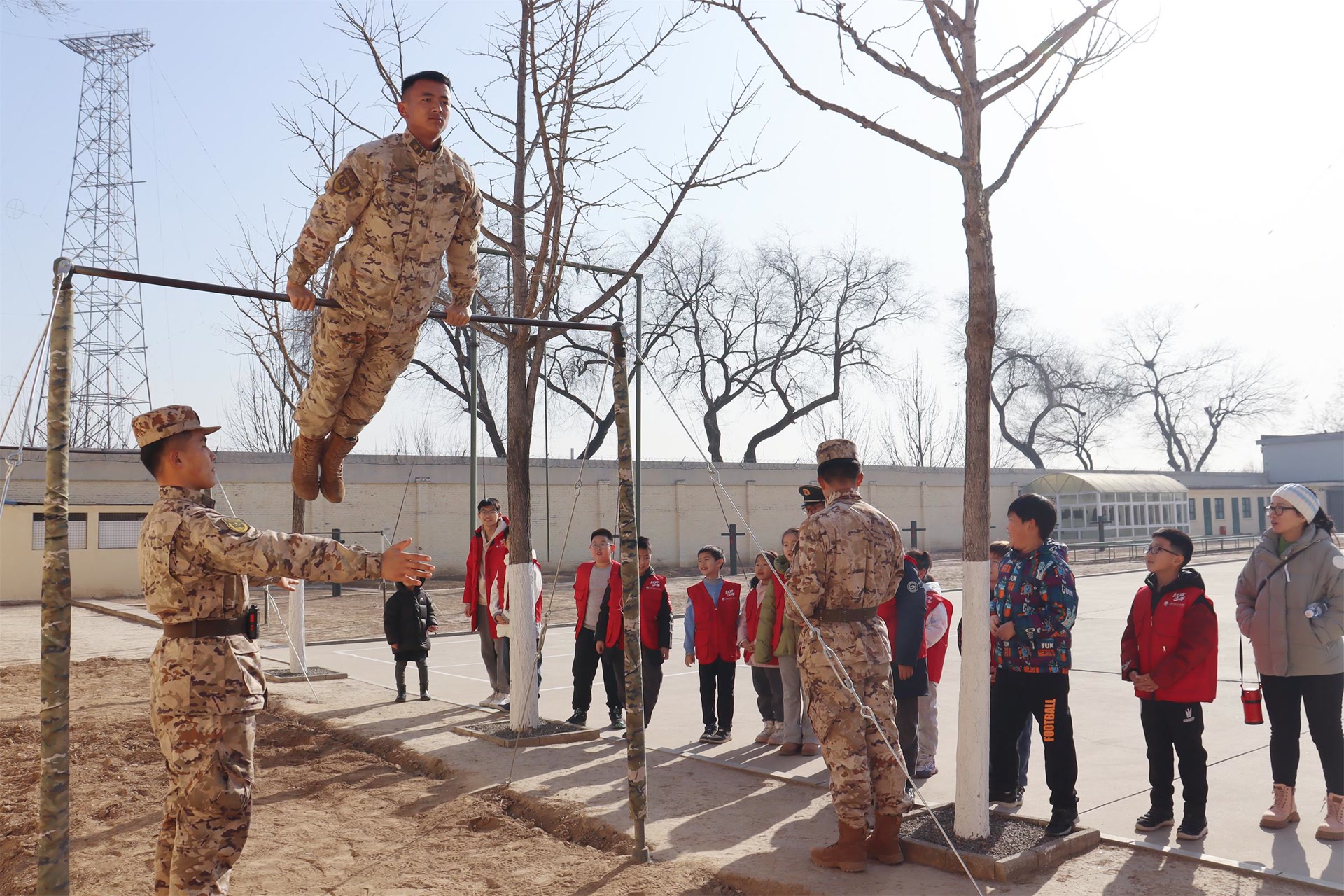 来到训练场,单杠训练展示将活动气氛推向高潮。官兵们动作标准利落,引体向上、悬垂摆动等动作一气呵成,展现出过硬的军事素质,赢得青少年们阵阵掌声。大家跃跃欲试,在官兵的保护和指导下尝试体验,真切感受军事训练的艰辛与军人的坚韧意志。