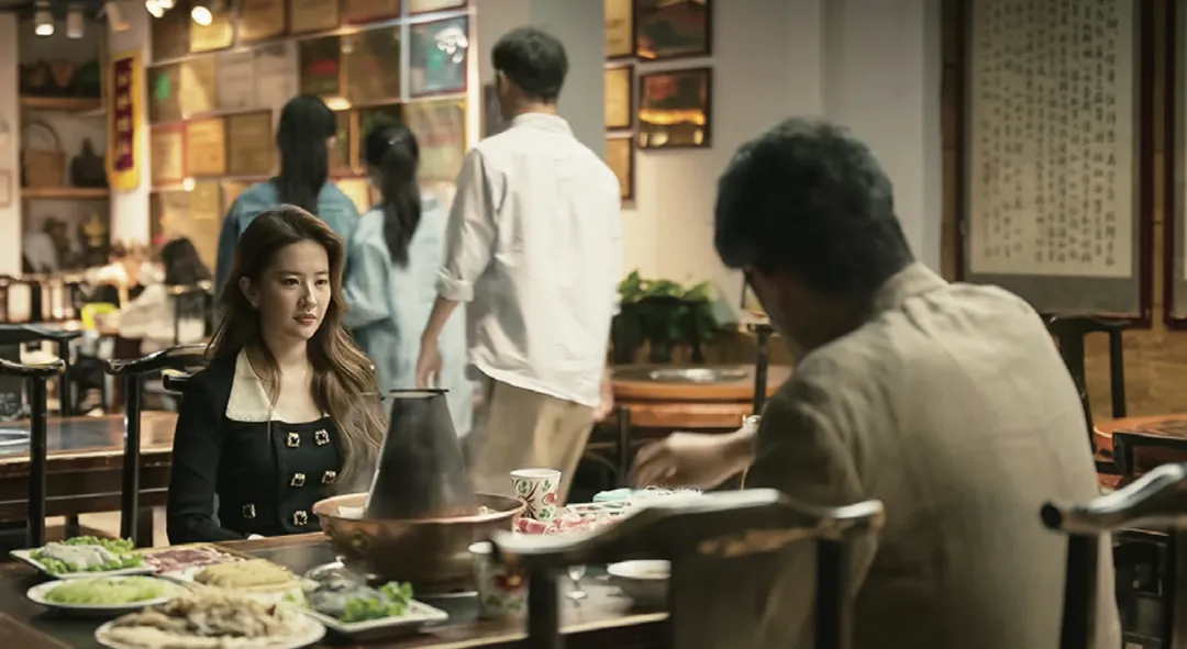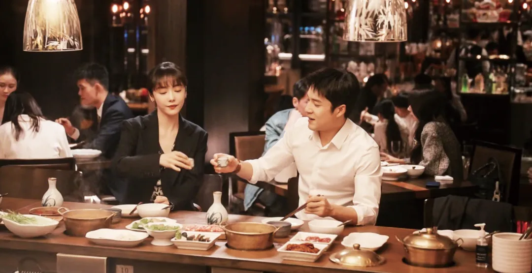 店内装修风格融合了现代设计感与巴蜀文化特色,整体色调以暖色为主,搭配竹编吊灯和特色餐具,既保留了重庆火锅的烟火气,又增添了艺术气息,营造出温馨舒适的用餐氛围。剧中角色在此聚餐对谈,热辣的火锅与喧闹的氛围,生动映照出现代都市人在职场与社交中的真实百态。