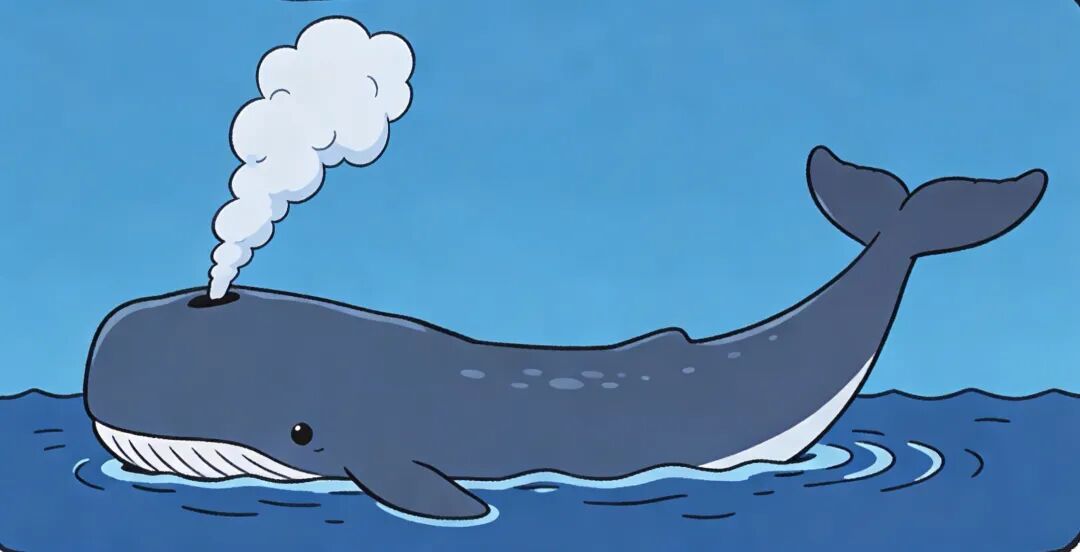 抹香鲸(深潜冠军):这位“斜杠青年”连呼吸都与众不同!它的气柱粗短(3-5米),并且向前倾斜45度,总是从左侧喷出,在海面上留下一个酷酷的 “斜杠”(/) 印记。