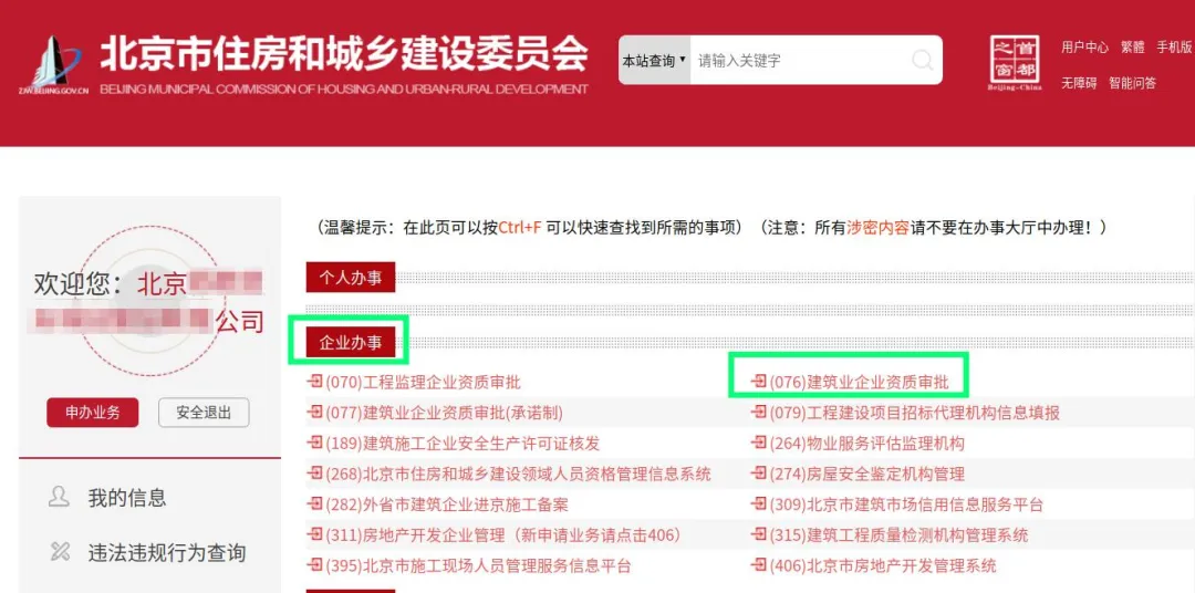 进入系统后,点击“(076)建筑企业资质审批”事项。