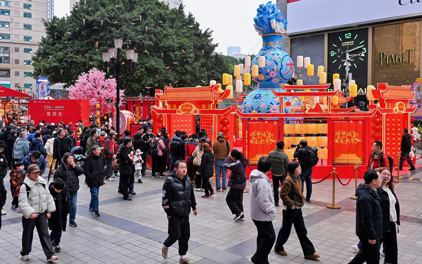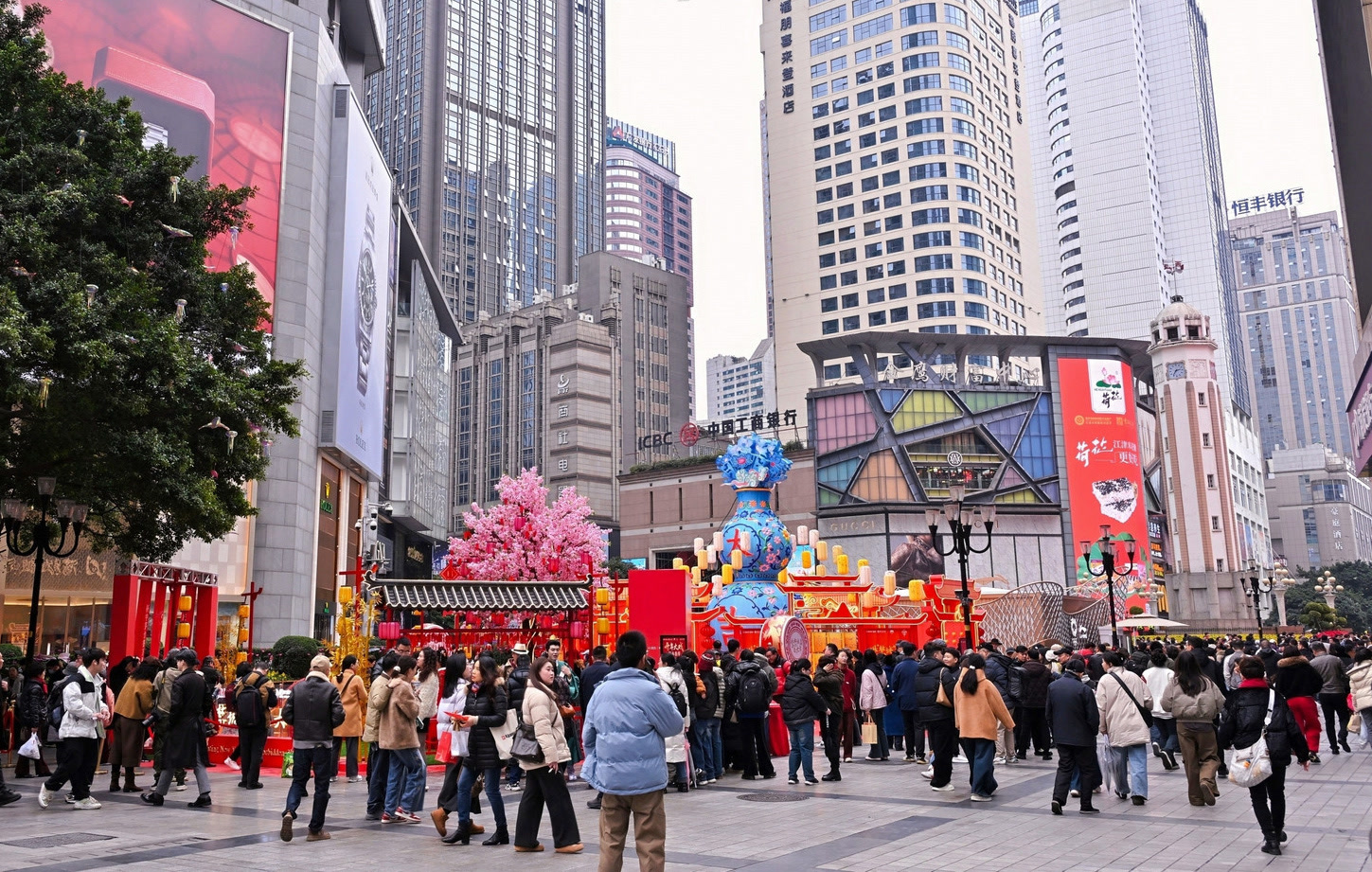 近日,“紫禁城里过大年”新春活动在重庆解放碑十字金街举办,北京紫禁城的厚重文化与山城重庆,碰撞出绚烂的新春图景。
