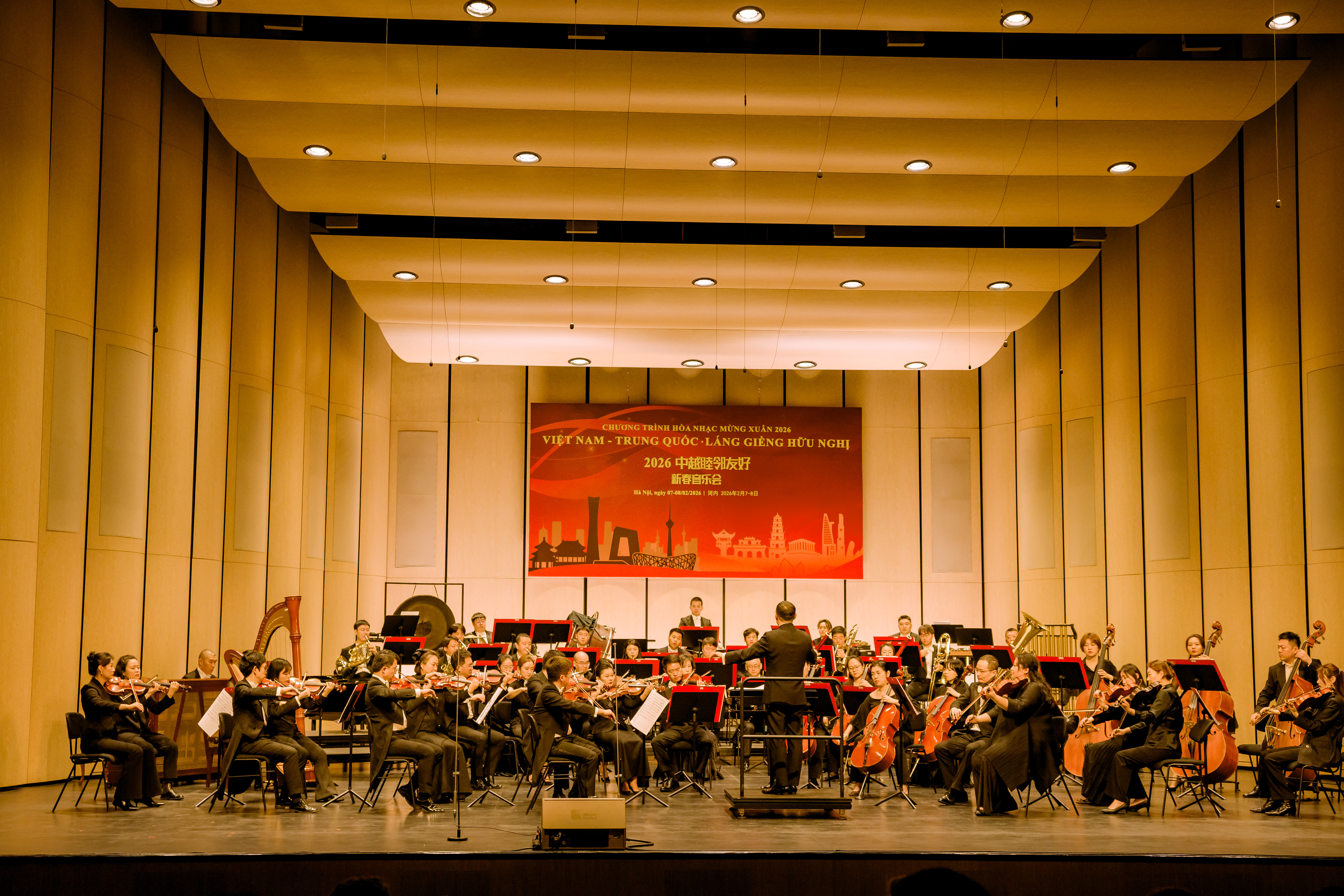 2月7日晚,由中国驻越南使馆、越南文体旅游部和公安部联合举办的“2026中越睦邻友好新春音乐会”在河内隆重举行。越共中央总书记苏林偕多位政治局委员,同何炜大使夫妇及两国各界友好人士、在越中资机构、媒体、留学生代表逾700人出席。