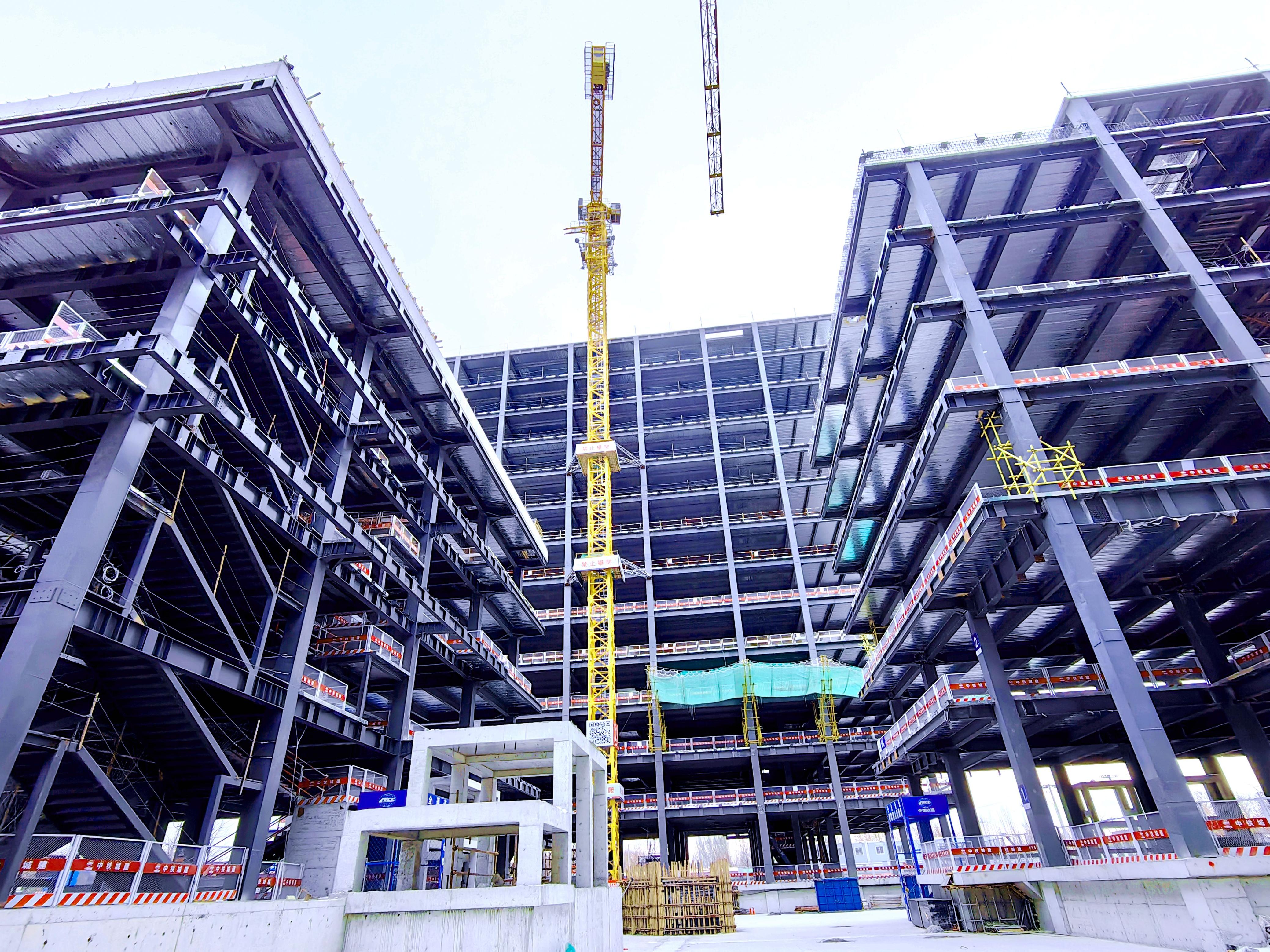 历时七个月的紧张施工,城市综合体实现5栋楼主体钢结构顺利封顶。中铁城建集团第一工程有限公司相关负责人介绍,项目自开工之初就确立了高标准的绿色施工目标,现场设置了雨水收集与中水回用系统,将收集的雨水用于施工降尘和养护。在建筑垃圾处理上,严格执行分类回收与资源化利用,显著减少了废弃物排放。
