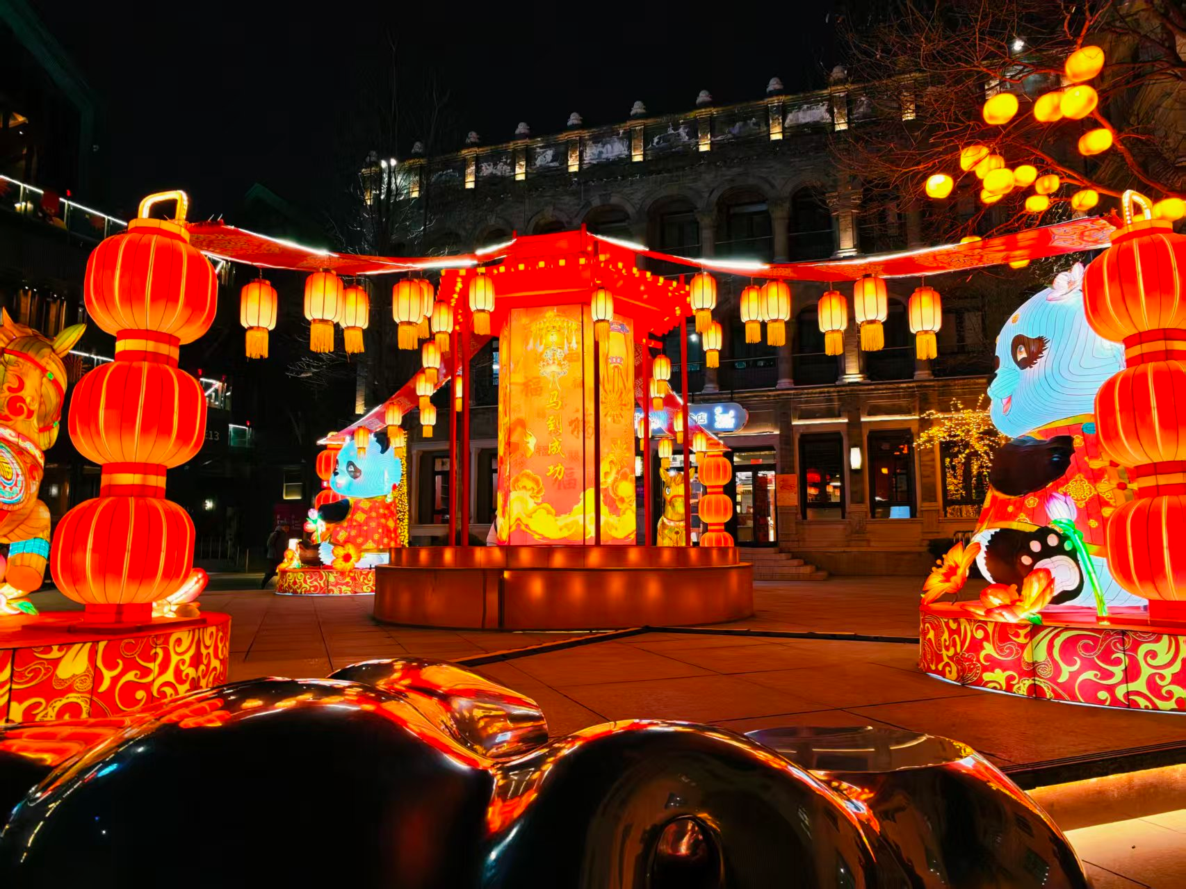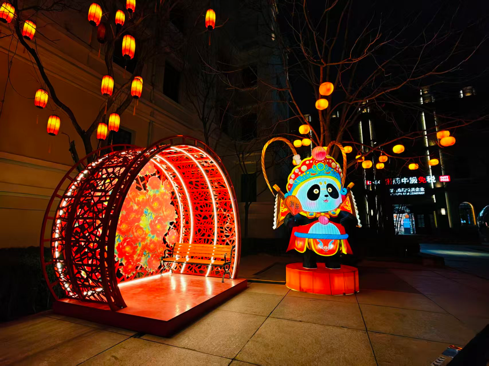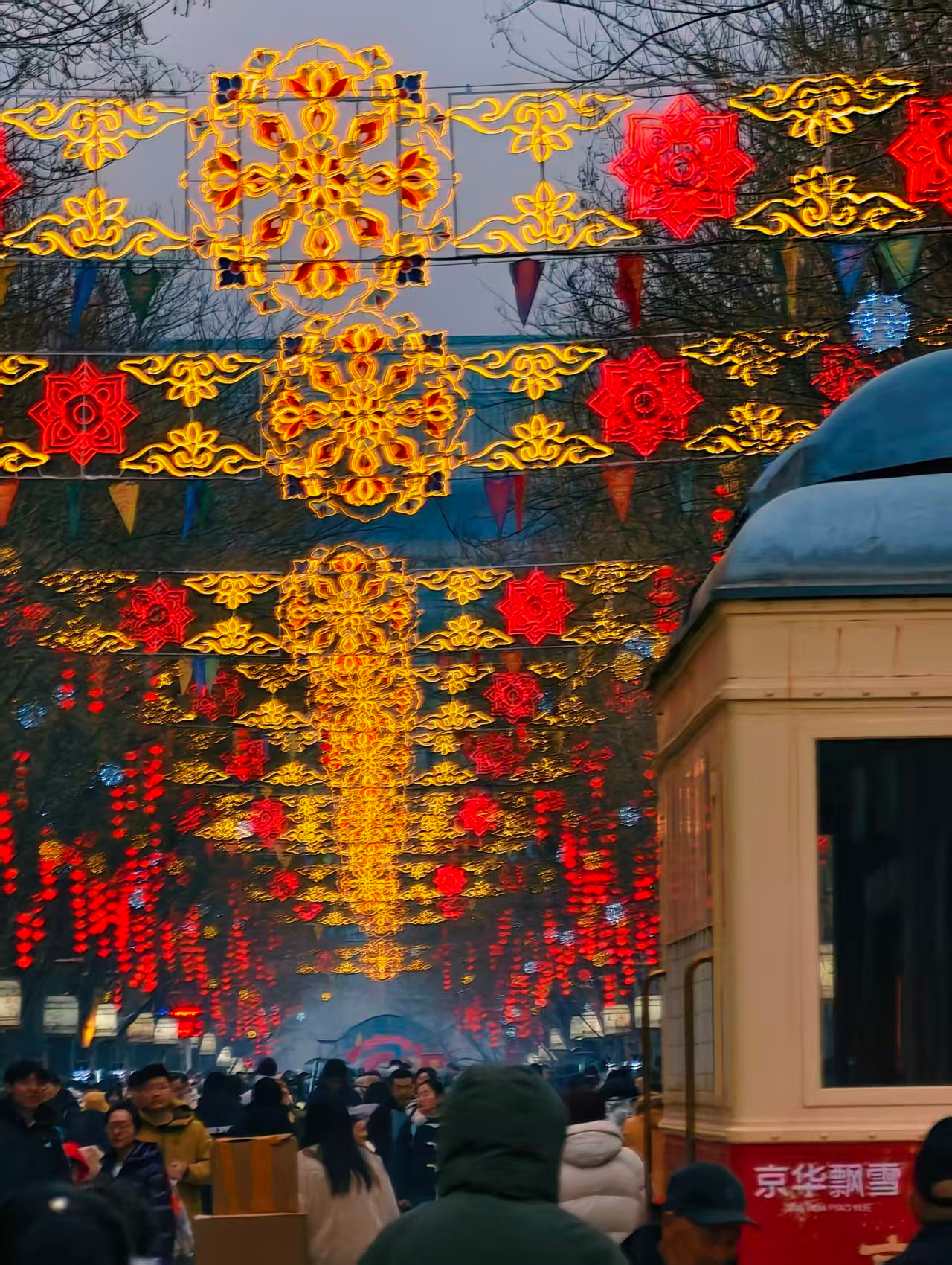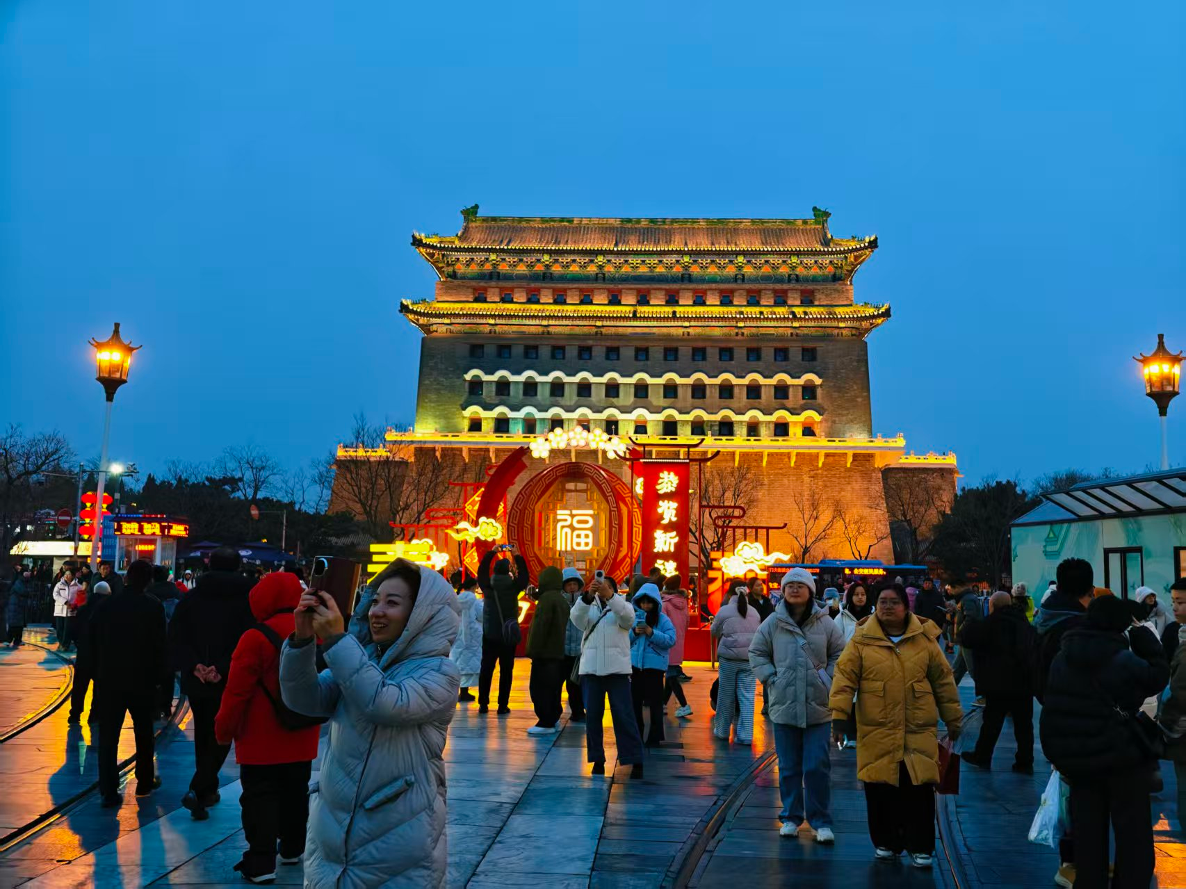前门步行街灯光璀璨,节日氛围拉满