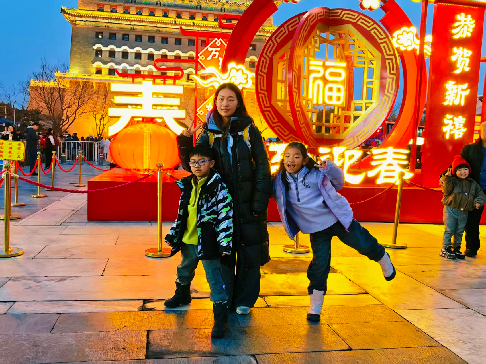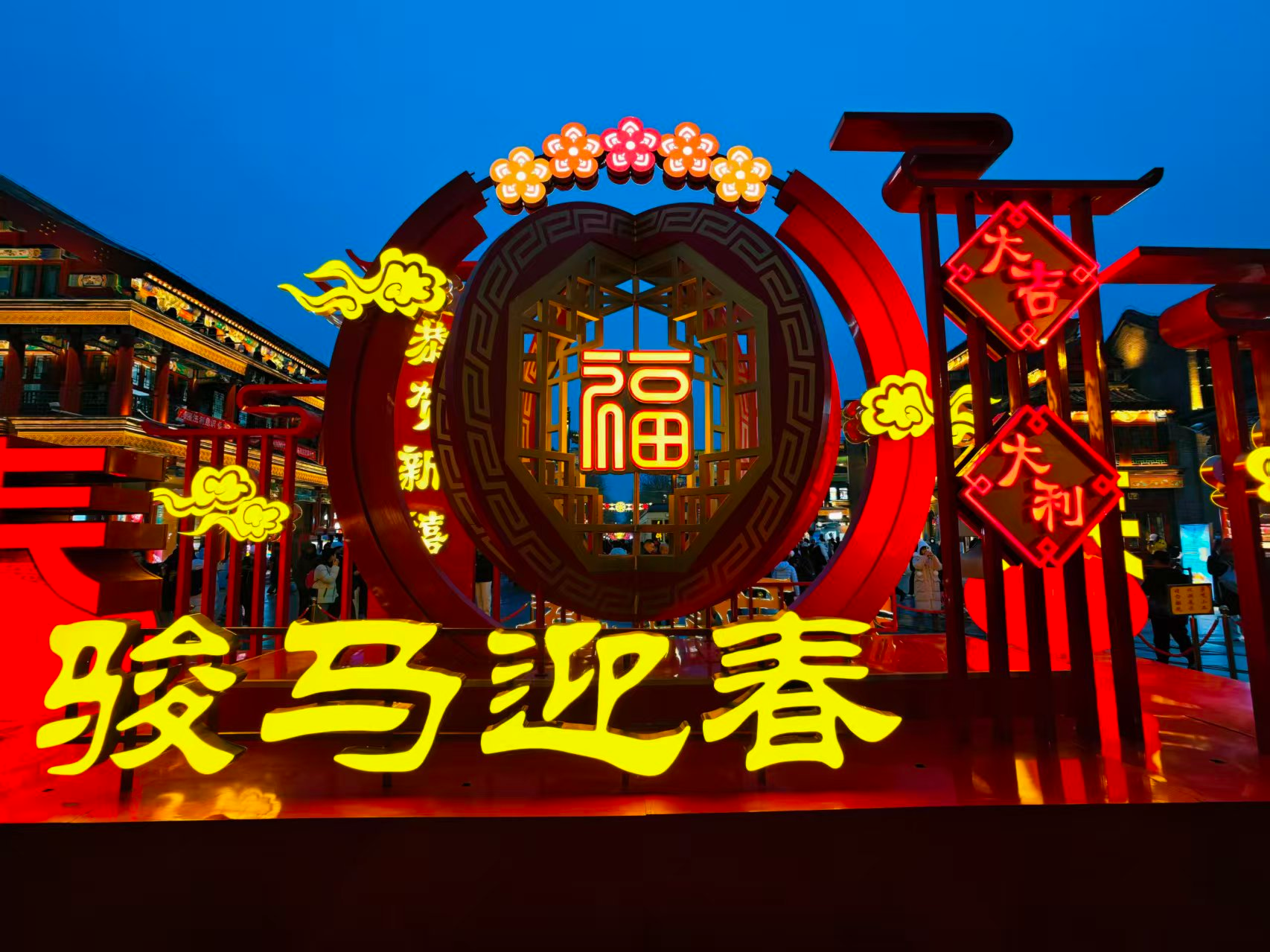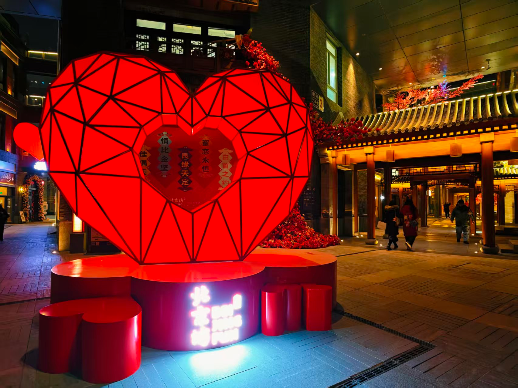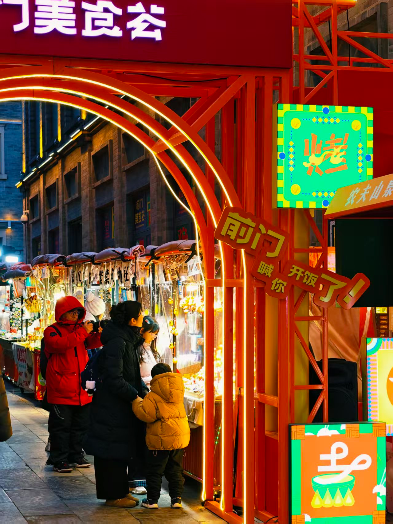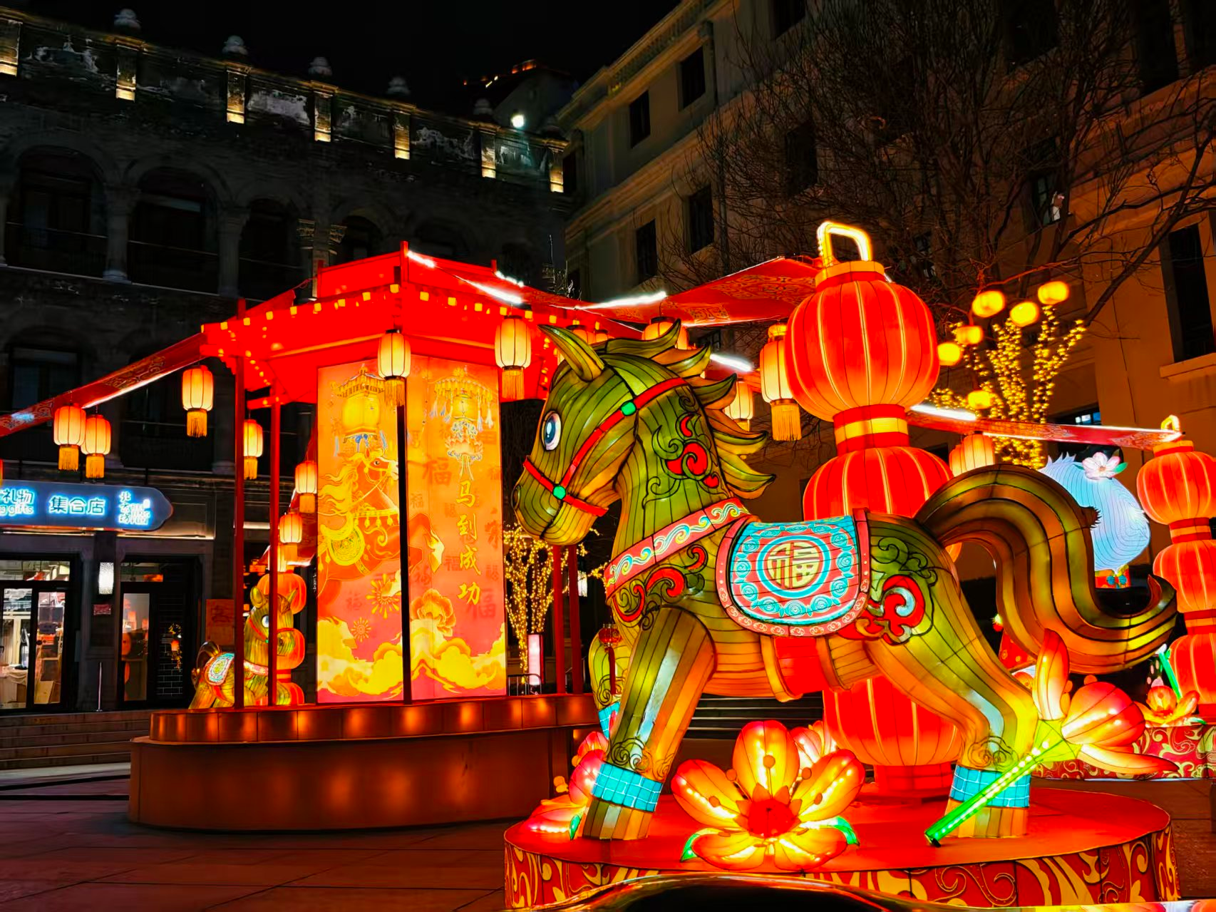 前门步行街灯光璀璨,节日氛围拉满