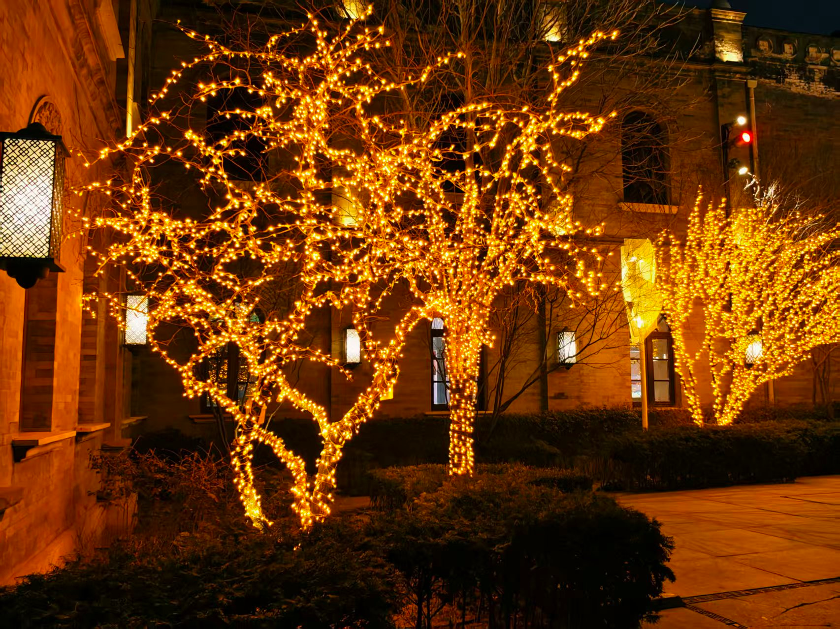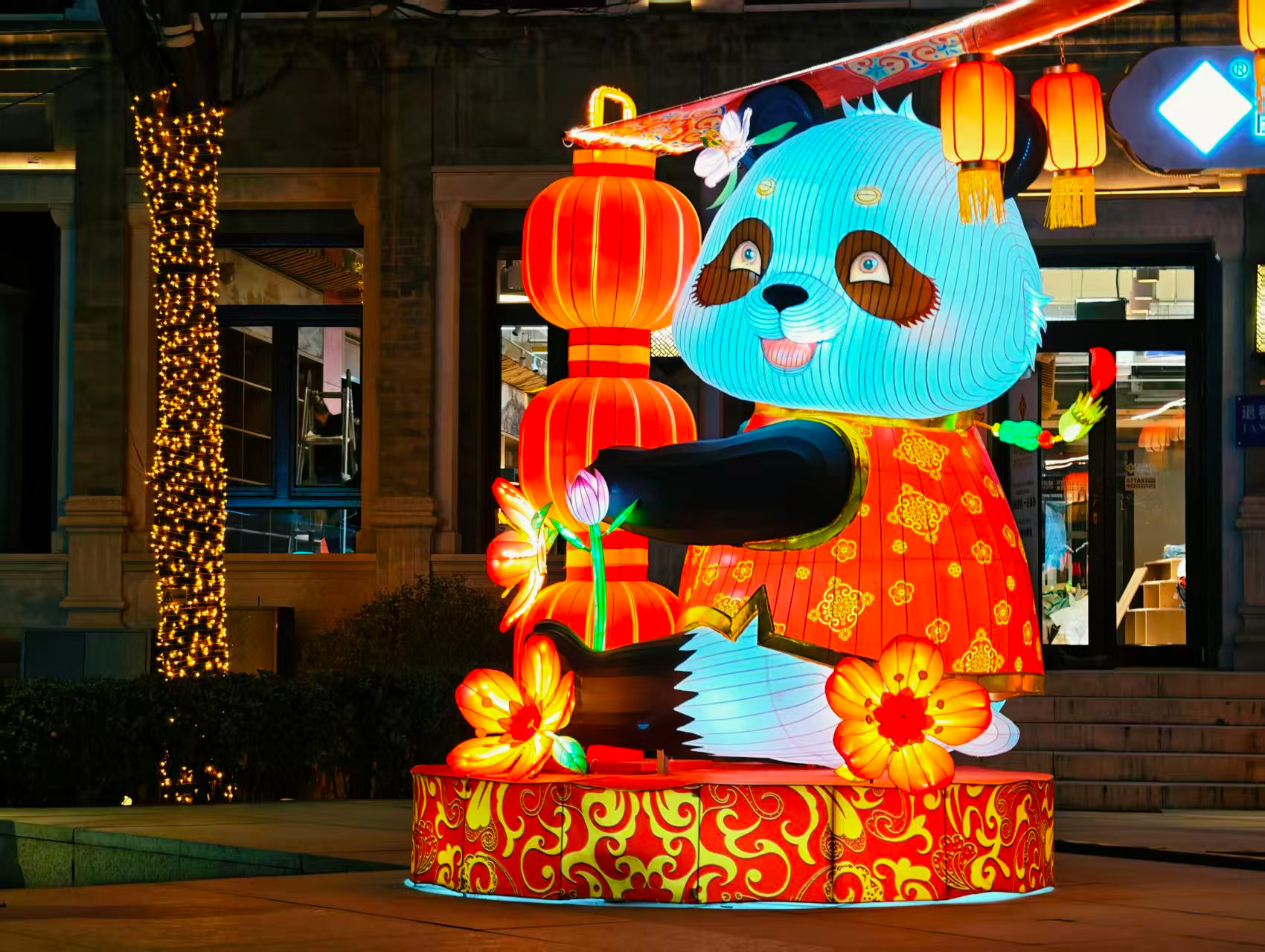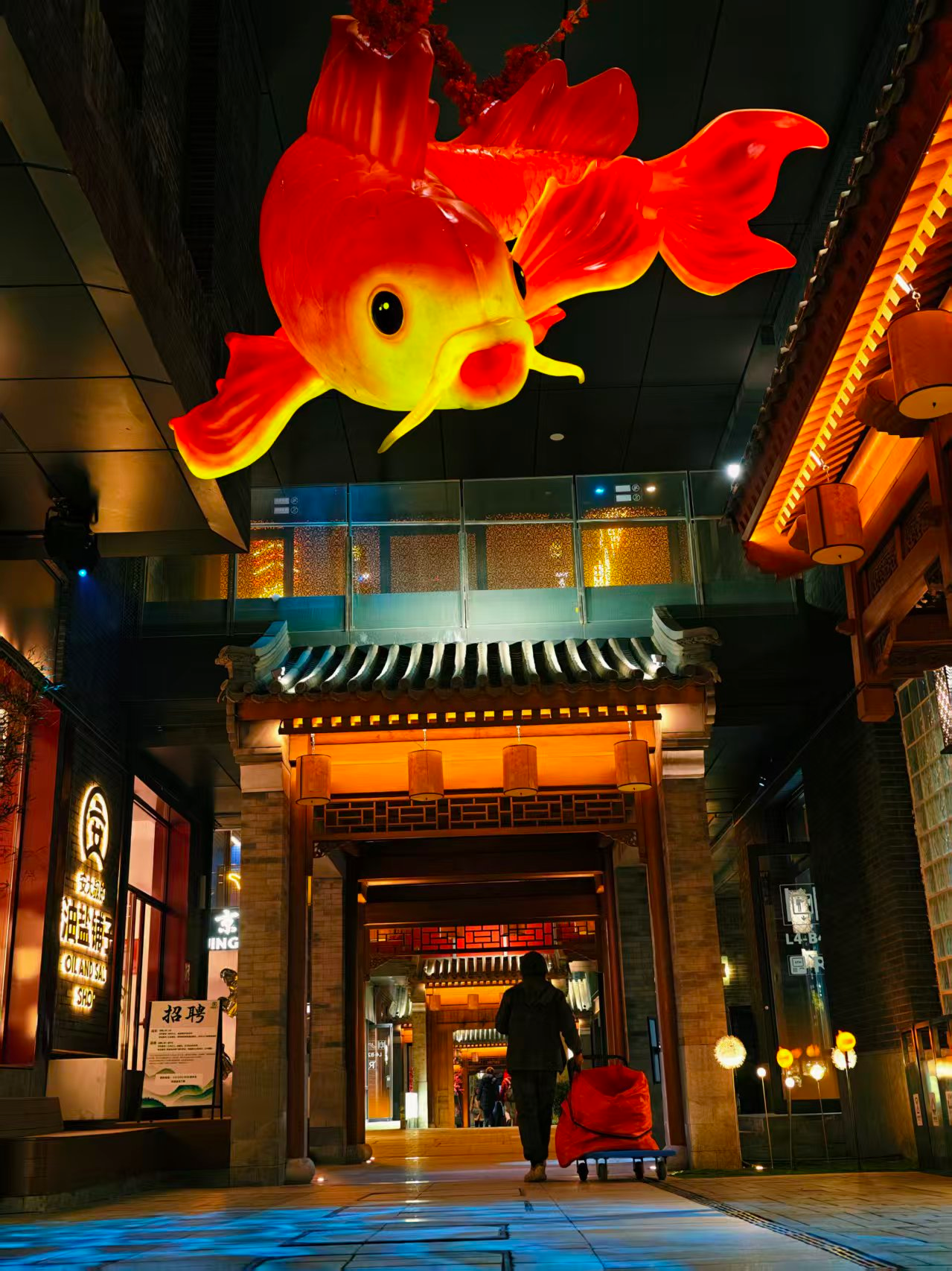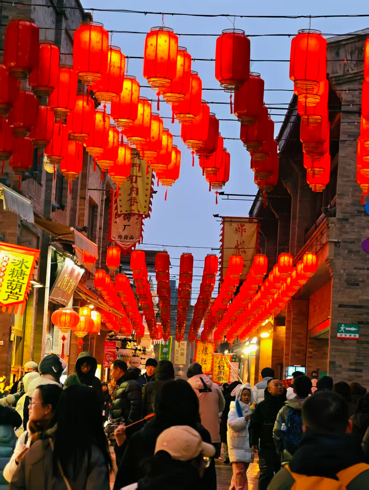 前门步行街灯光璀璨,节日氛围拉满