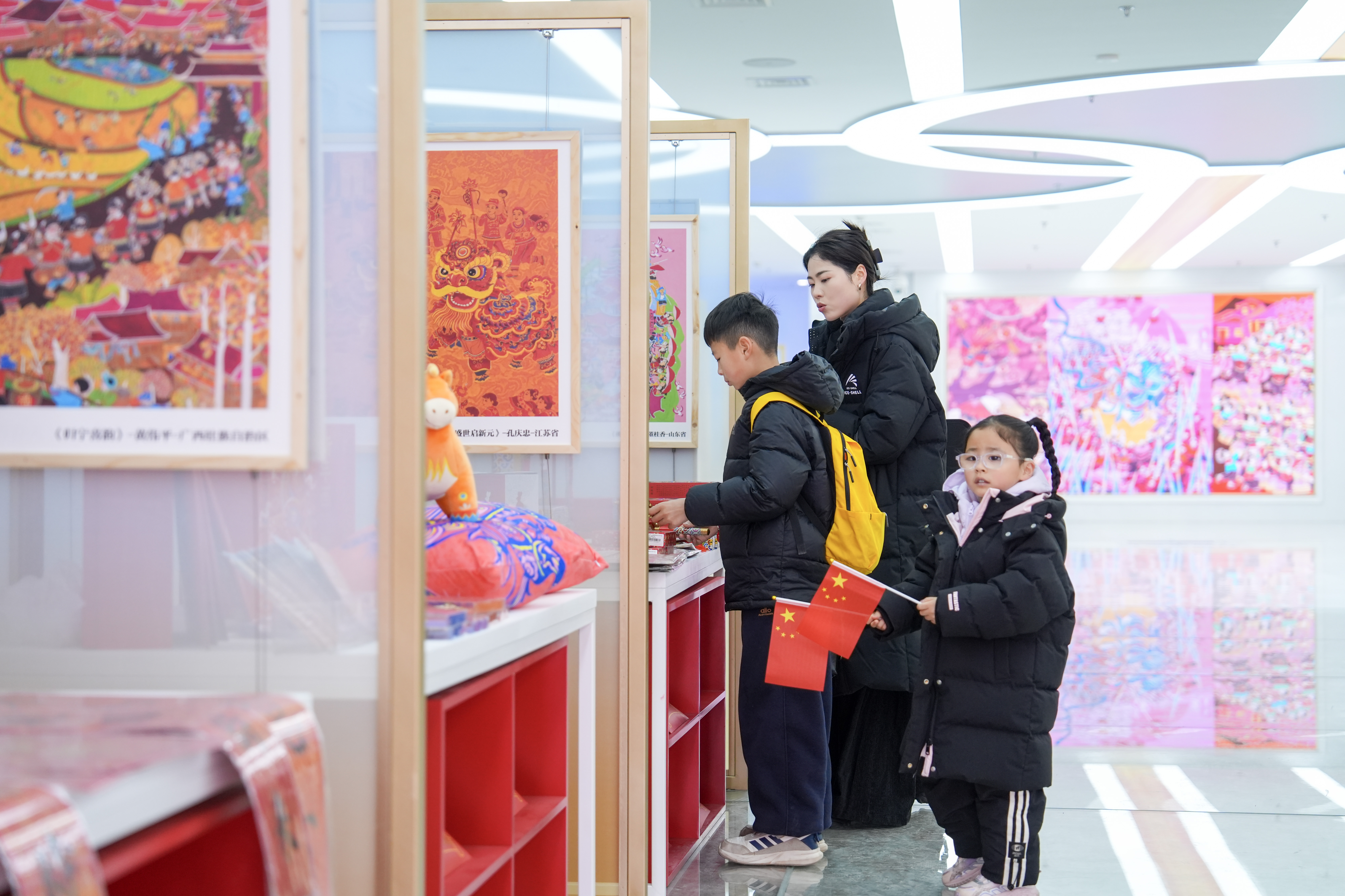 活动现场以“赏年画·过大年”为主线,在馆内前厅、连廊、墙面等区域,通过营造沉浸式年画体验场景,以科技手段呈现“新年画”之美。馆外还布局大型年画主题灯光装置,并设置互动拍照打卡点,广大市民和游客可前来观光打卡,让新年画艺术融入市民日常生活。