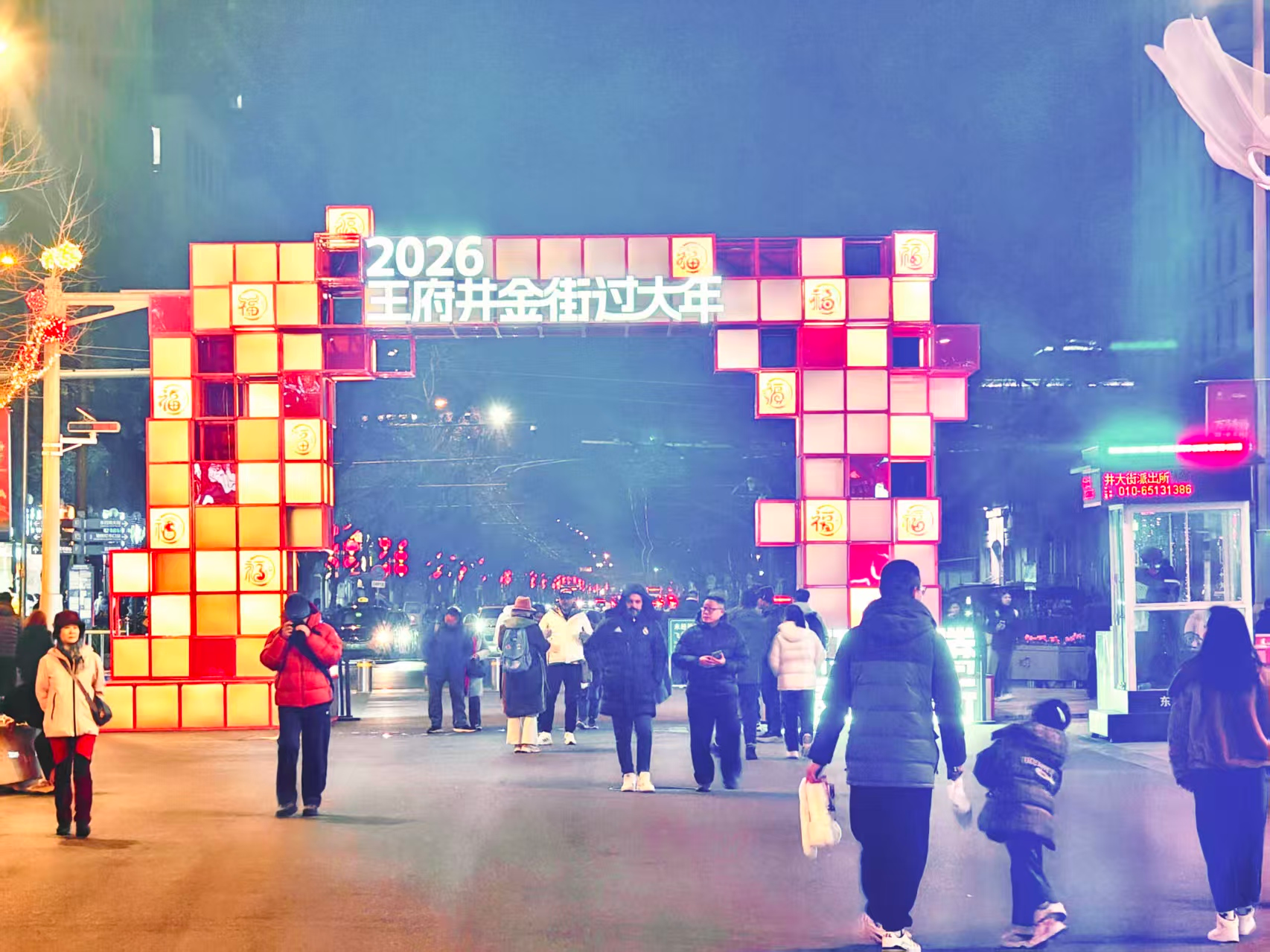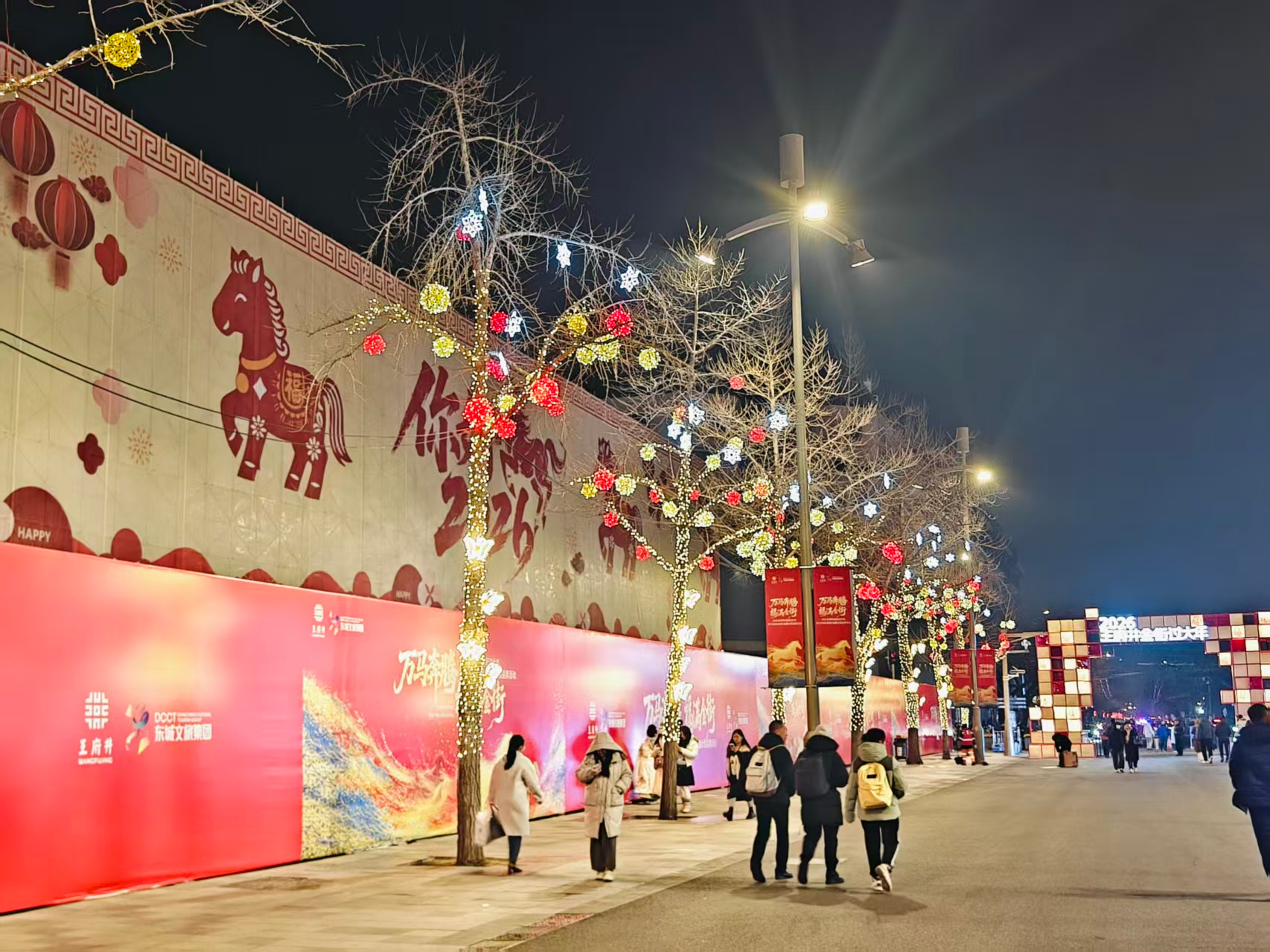 2月9日,夜幕下的王府井,换上节日的“盛装”。红色的“万马奔腾”主题装饰格外醒目,将马年的喜庆氛围拉满,让每一个路过的人都忍不住放慢脚步,沉醉在这片流光溢彩之中。