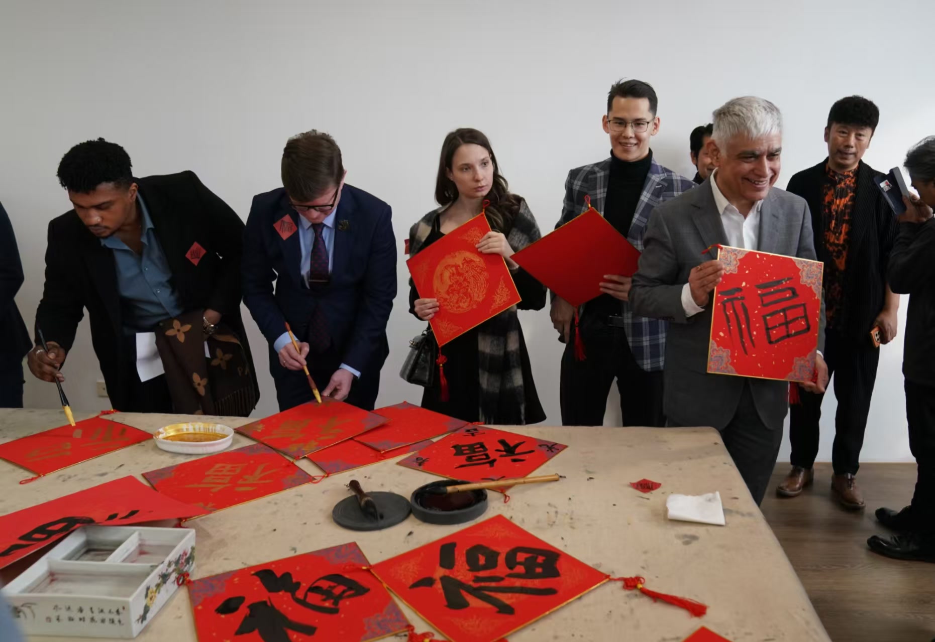 在全国政协委员、北京画院院长吴洪亮的引领下,中外专家学者借由“以梦为马——丙午新春特展”进入古今交融的艺术情境。展览以齐白石、徐悲鸿的经典作品为引,汇聚北京画院多位名家力作,并融入当代艺术家对“马”的多元化诠释。这是本次雅集的主要活动,也是北京市“骏马贺新春 京彩中国年”新春文化活动的重要组成部分。观展同时,外国专家们对提笔学写“福”字、亲手操作木版水印等互动体验尤为兴致盎然,在沉浸式体验中领略东方美学的含蓄韵味与中华传统文化的深厚底蕴。