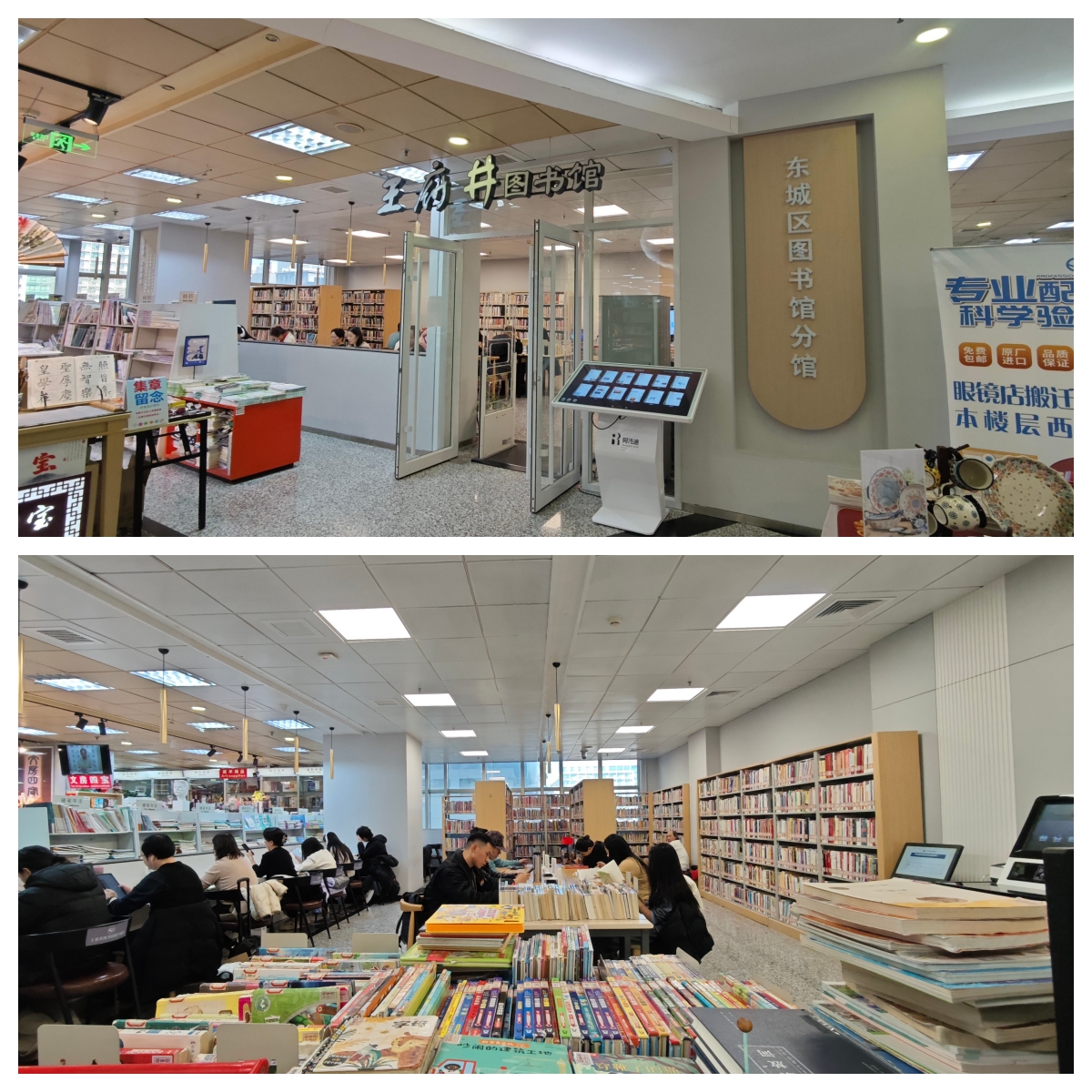 由东城区文化和旅游局与北京发行集团合作建立的东城区图书馆王府井书店分馆,坐落于书店四层。分馆以最大限度满足读者阅读需求为目标,除提供借阅服务外,还将选书权利充分赋予读者,推出“您读书我买单”特色服务,获得社会各界的一致好评。