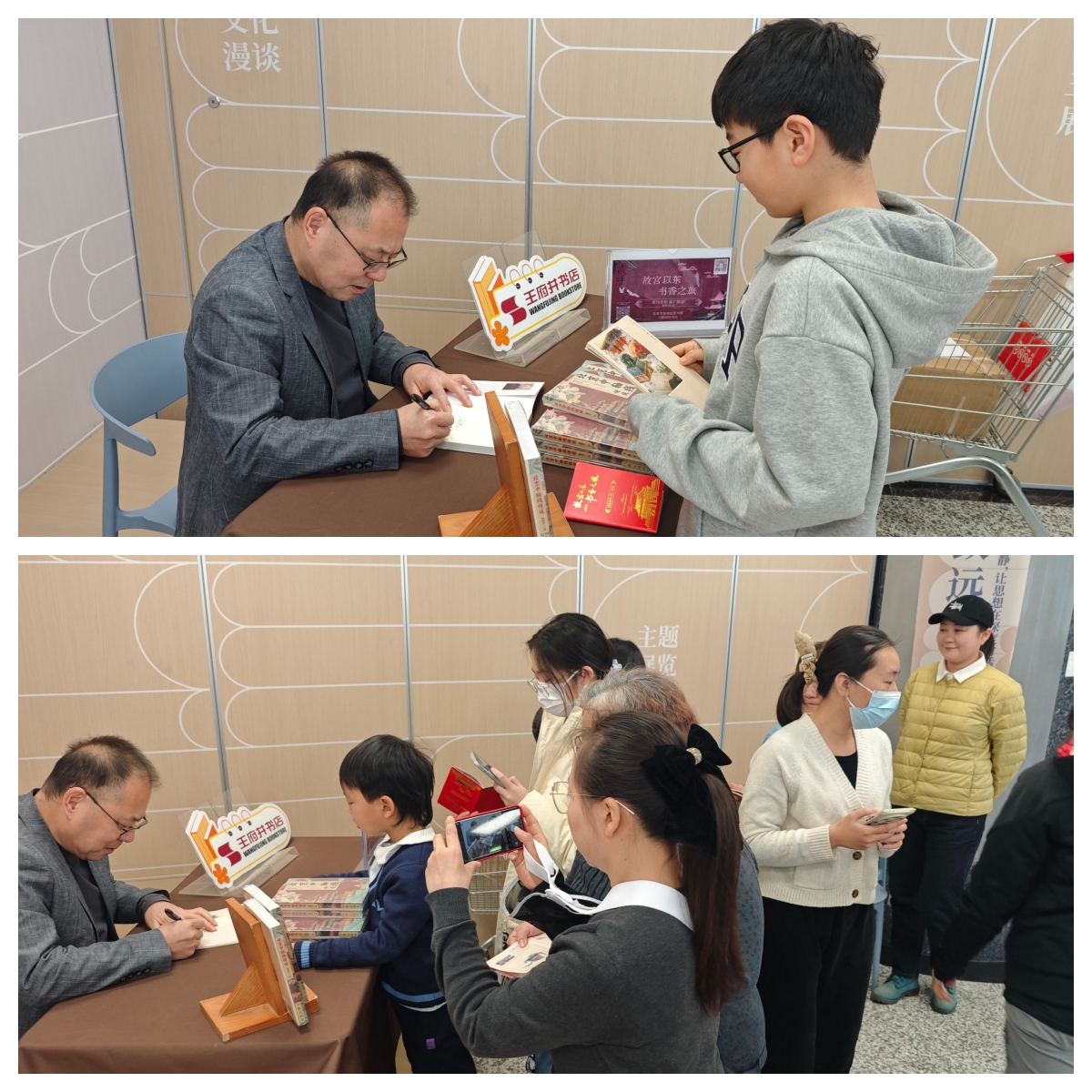 讲座结束后,读者们和杨老师合影,并邀请老师在纪念册上留下签名。