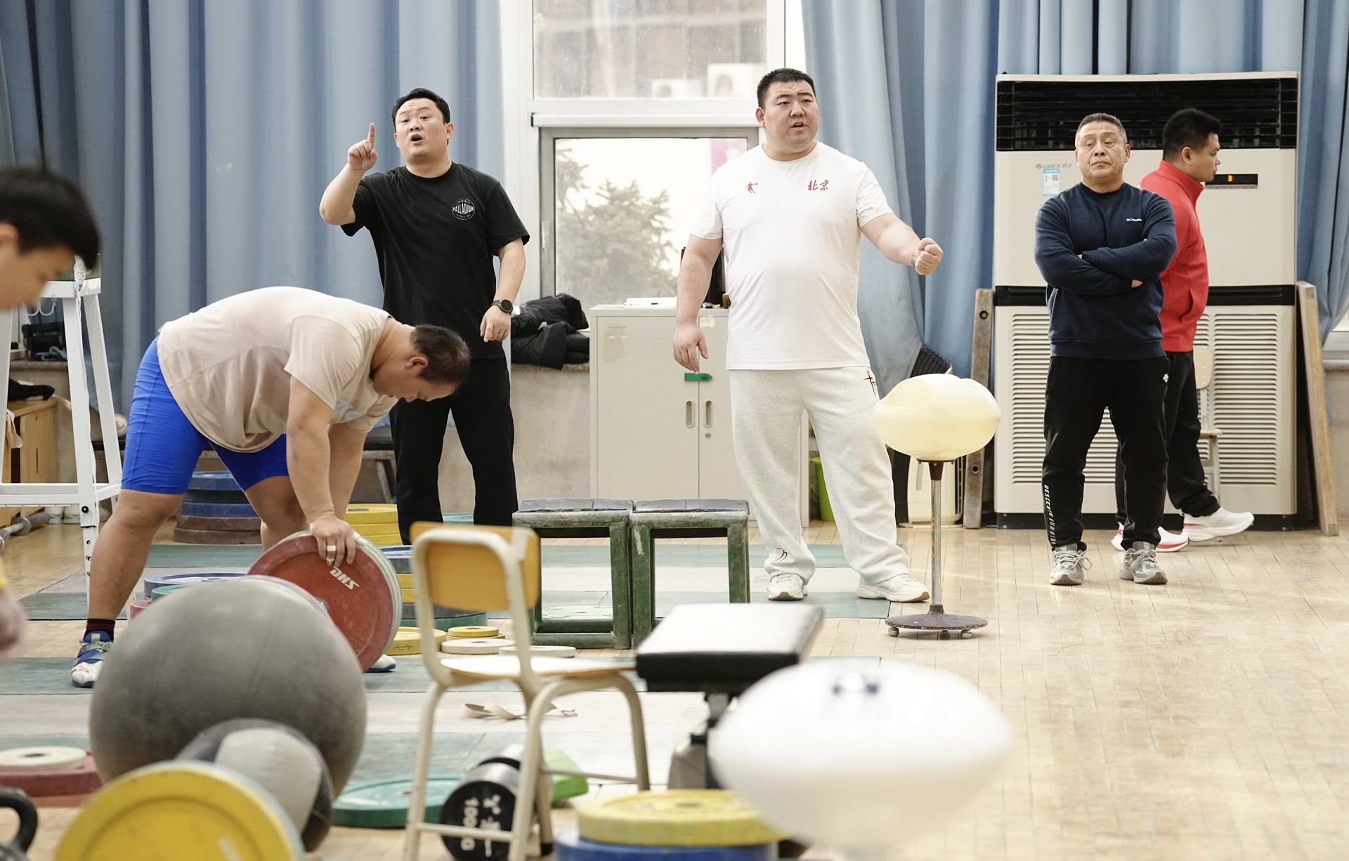 北京举重队教练艾雨南认真地看着苦练的队员们,并不时与他们交流。这位五战全运会赢下三枚金牌的举重传奇介绍说,北京举重队将在除夕上午进行蛇年的最后一练,然后在大年初三进行马年第一练。“去年的十五运会后,咱们队伍处于新老交替、重新出发的阶段。新全运周期的第一年,大家都期待在今年4月进行的全国举重锦标赛上拿个‘开门红’,所以练得更投入。”艾雨南说。
