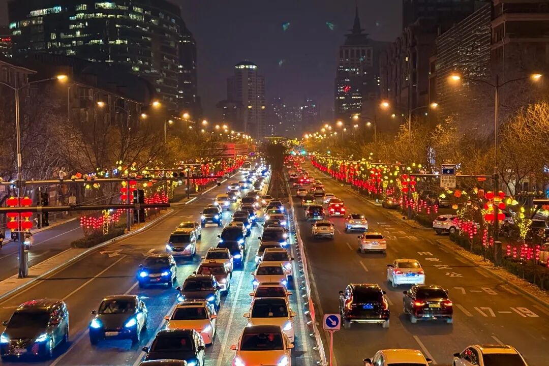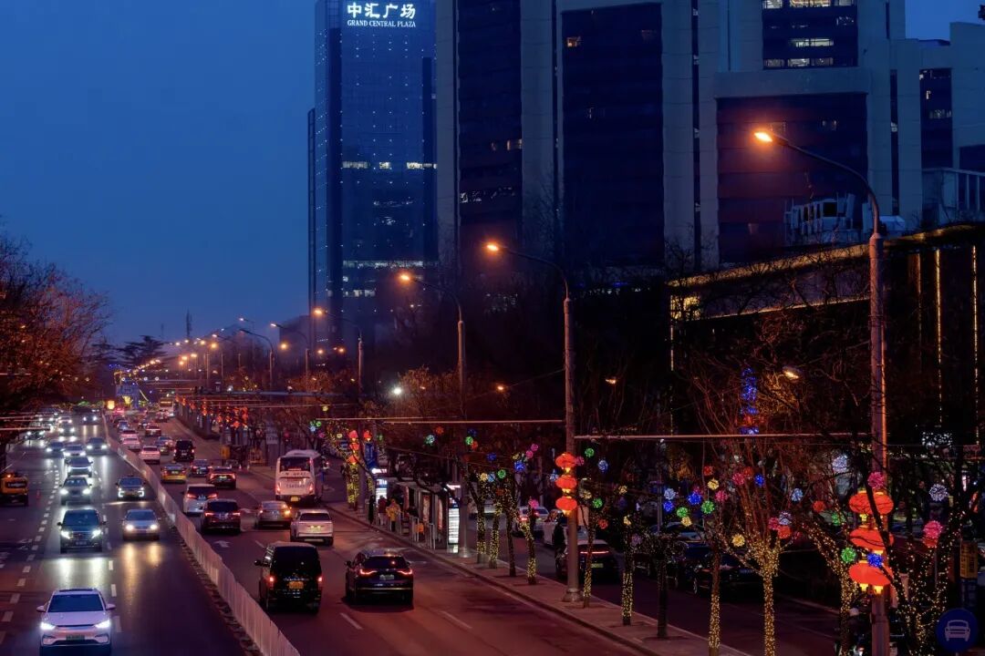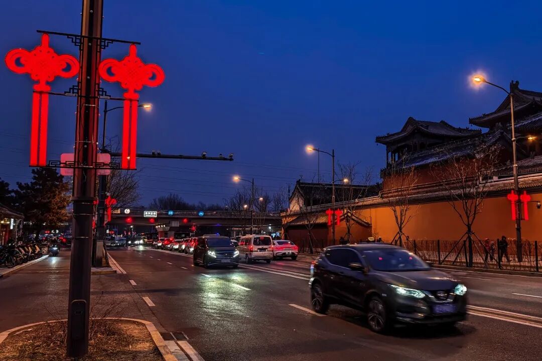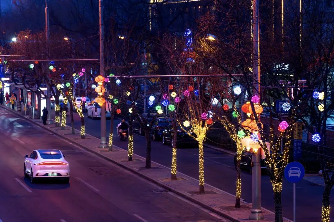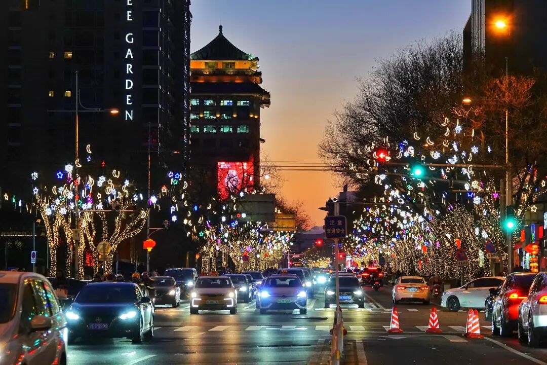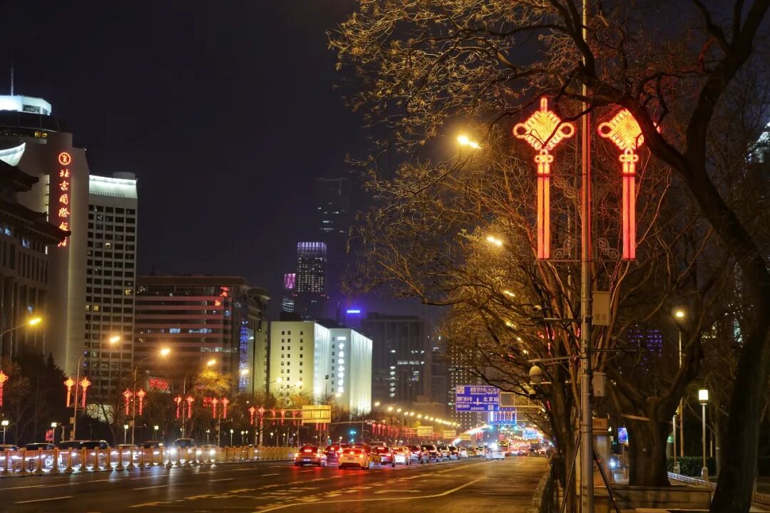 华灯初上,长街如诗。长安街畔,藤球灯与礼花灯连缀成河,蜿蜒入胡同深处;中轴线上,数百组红灯笼垂悬夜幕,与城景相映——光影勾画出古都的庄重轮廓,也点亮岁首的祥瑞祝福。