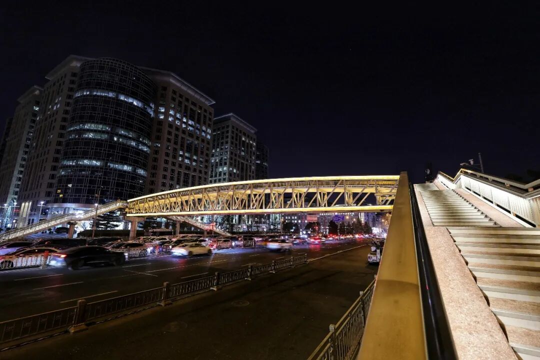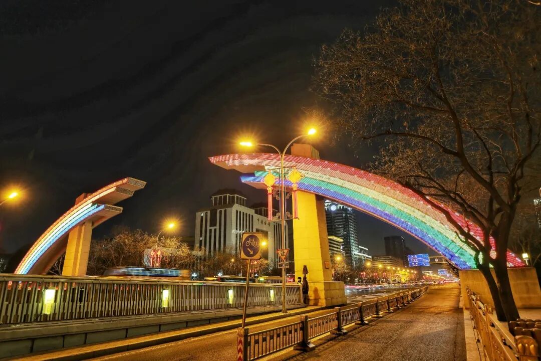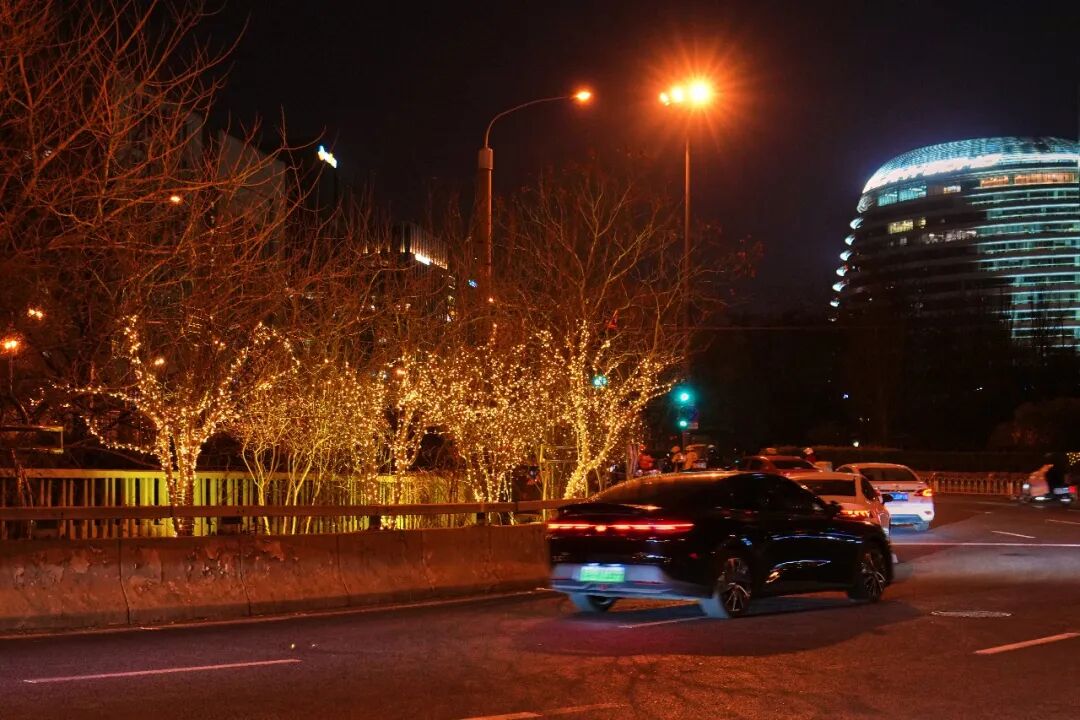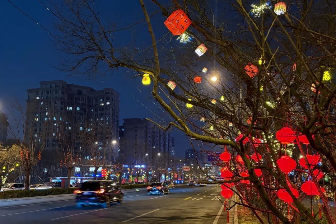 灯火沿路网流淌,经纬交错成章。崇雍大街等主干道与“两轴一环”交相辉映,东二环桥区树挂如星雨垂落。移步换景,车行似逐光河,人游如观彩卷,昼夜各呈其韵。