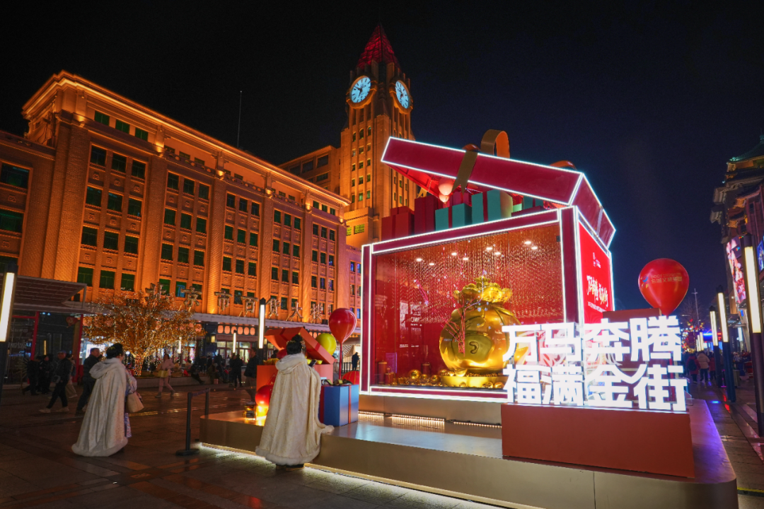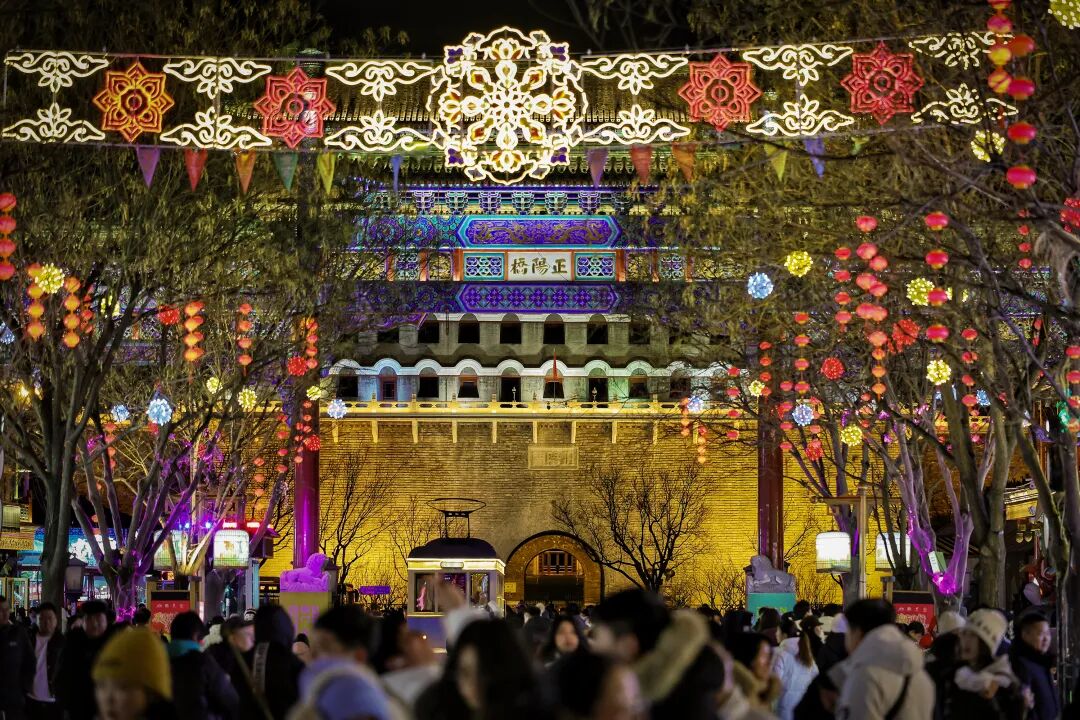 商圈街巷,年味最是醇厚。王府井金辉流淌,“王府八骏”踏光迎客;前门大街彩灯高悬,京剧灯影映照古街砖瓦。隆福寺的潮韵、崇文门的霓虹、簋街的烟火、金宝街的华彩、胡同里的暖意……每一处灯火,都在讲述东城的新春故事。