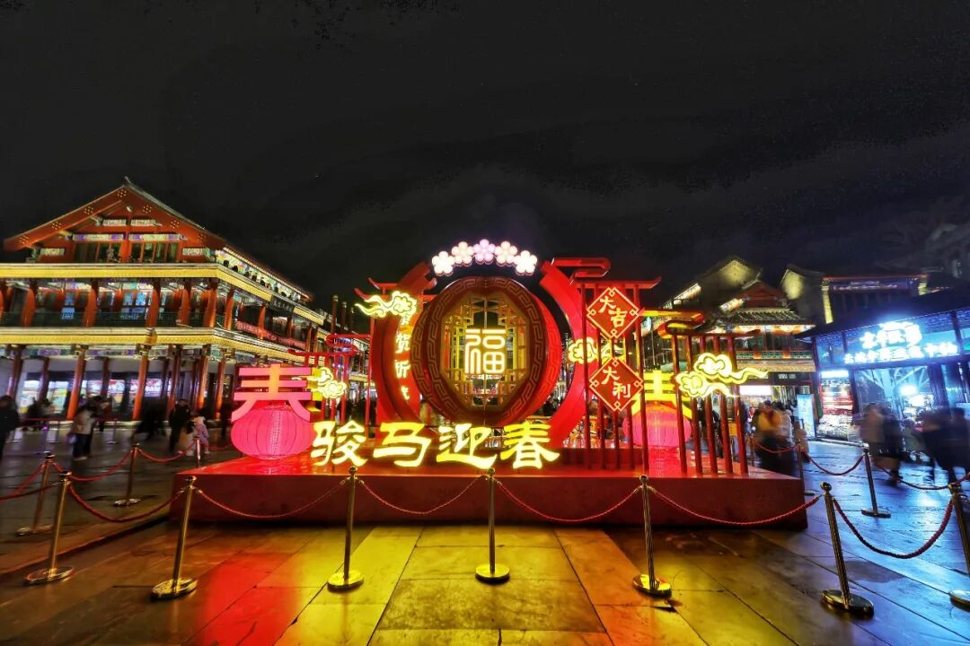 以“骏马迎春、福满东城”为韵,沿“两轴一环”徐徐展开。流光溢彩漫过东城街巷,古韵新风于此交融,织就一幅灯火辉煌的新春长卷。