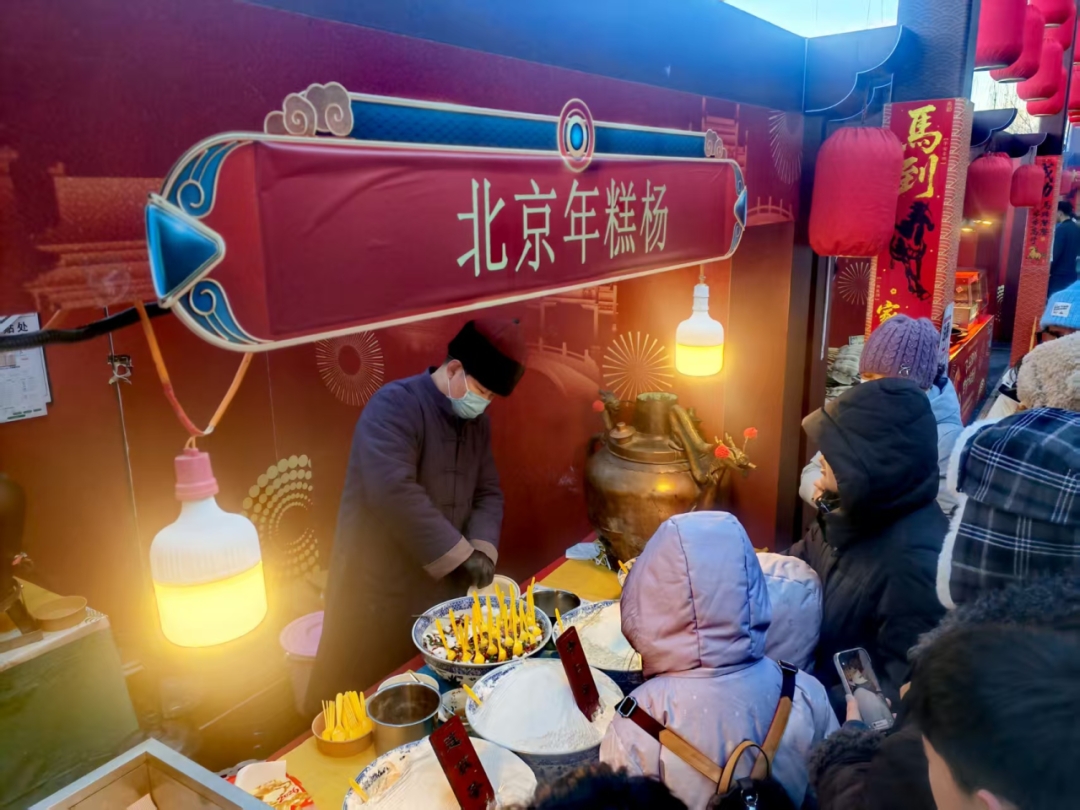 走进新春吉市,喜庆的红灯笼挂满摊位,年味在商户们热情的叫卖声中弥漫开来,吉味美食区里香气扑鼻,庆云楼、年糕杨、春伦等老字号传统美食唤醒味蕾记忆;吉趣文化创意区里,京城特色文创与马年特色周边令人目不暇接;非遗手作坊内,糖画糖人等互动体验让游客近距离感受传统技艺的魅力;更有新春年货摊位穿插其间,让每一位访客都能在逛、吃、玩、乐、购中,沉浸式感受京味新春的独特韵味。