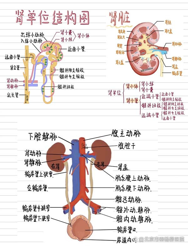 肾小管:包括近曲小管、髓袢降支与升支、远曲小管,末端连接集合管。集合管汇集多个肾单位的尿液,经肾盏、肾盂、输尿管进入膀胱。每个肾脏约有250条较大的集合管,每条约收集4000个肾单位的尿液,在尿液浓缩过程中发挥关键作用。