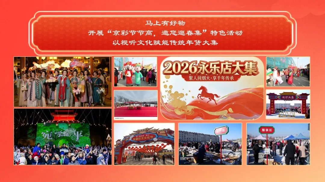 深化“视听+”文商旅体融合新模式,打造线上线下联动消费新场景。联合通州、顺义、丰台等区,联动京津冀、西藏、内蒙、云南等援建协作地区,开展“京彩节节高,邀您逛春集”特色活动,以视听文化赋能传统年货大集,实现内容、体验与传播的融合升级,让市民在沉浸式逛集中感受传统年味与当代视听文化的交融。推出“北京大视听潮玩”品牌,推动优质视听IP与线下生活深度融合,解锁潮流文化新体验。