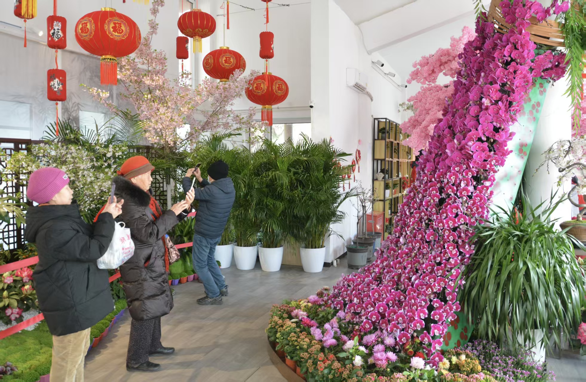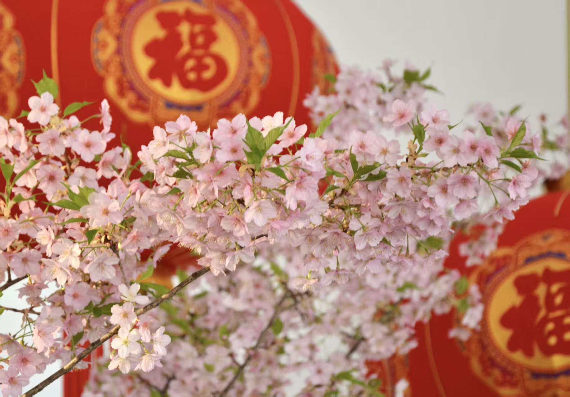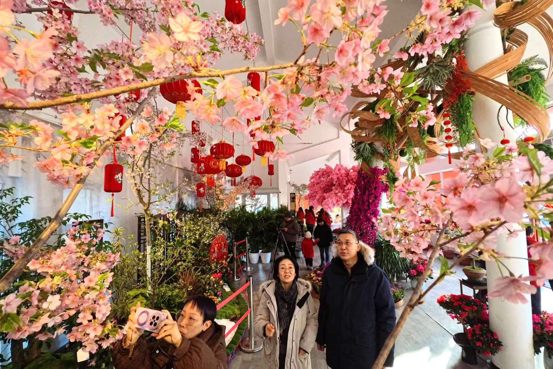 步入小樱驿站,仿佛一脚踏入了提前而至的春天。在大红灯笼、山石流水、蝴蝶兰花瀑的映衬下,粉樱娇艳,春意袭人。