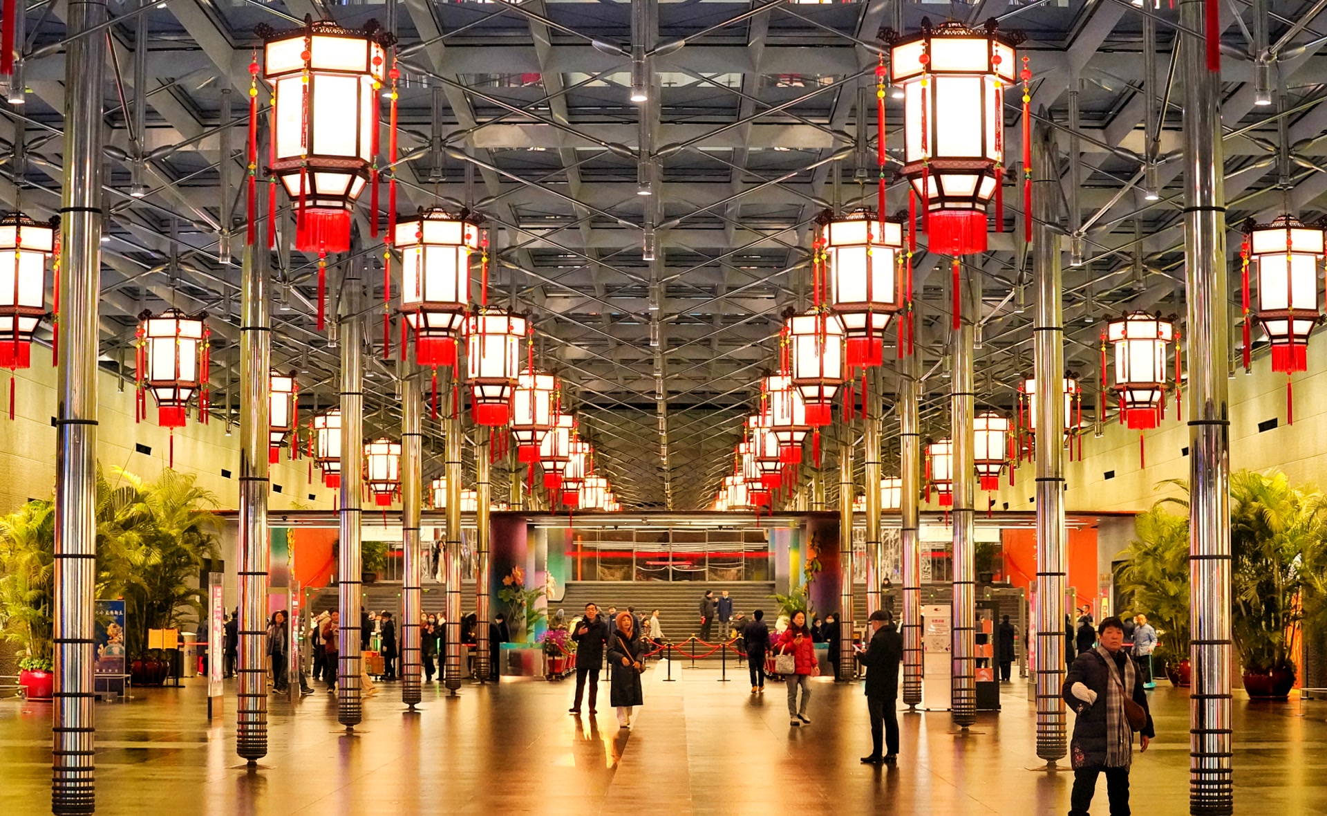 国家大剧院北水廊下悬挂精致宫灯。北京日报客户端记者 方非摄