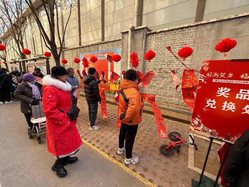 “在家门口就能赶游园会、看民俗、吃小吃,这年味儿一下子就浓起来了,太开心了!”花乡街道郭公庄中街社区的活动现场,不少居民忍不住发出赞叹。社区居委会大门口装点着新春装饰,人流往来、笑语不断,满是温馨喜庆的过年氛围。
