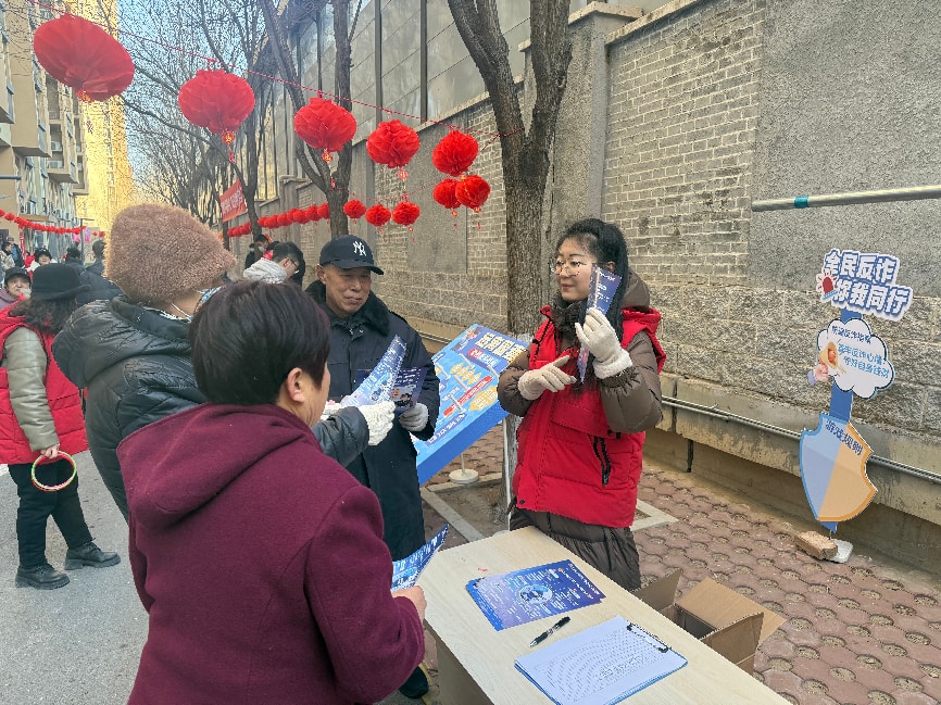 为让居民在欢乐过节的同时,收获实用服务与安全保障,社区将便民服务与游园活动有机结合,现场专设反诈宣传、垃圾分类科普、健康义诊三大服务专区。工作人员向居民发放宣传资料,耐心讲解电信诈骗防范技巧;居民通过参与游戏学习垃圾分类知识;医护人员现场为居民免费测量血压、提供健康咨询,把暖心健康服务送到群众身边,切实达到了“年味浓、服务暖、安全稳”的活动效果。