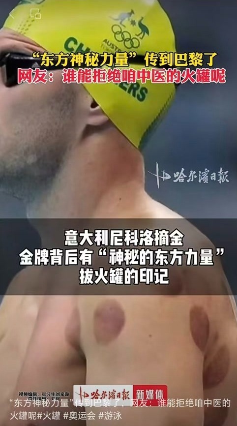巴黎奥运会,中国运动员张雨霏、覃海洋、潘展乐身后的拔罐痕迹曾吸引大量网友关注。