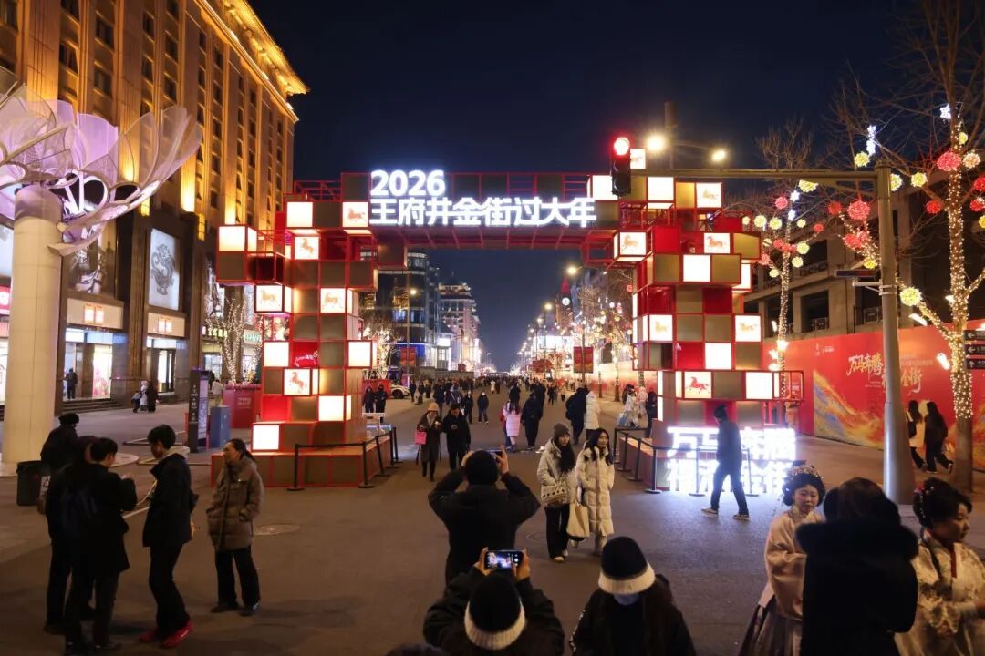 一条街逛遍国潮快闪、科技体验、光影星河,一站式解锁吃购游娱全场景——近日,“万马奔腾 福满金街——2026王府井金街过大年”(以下简称“金街过大年”)活动正式拉开帷幕,一幅沉浸式、可互动、光影交织的新春长卷在金街铺展,邀市民游客共赴金街之约、共度欢乐新春。