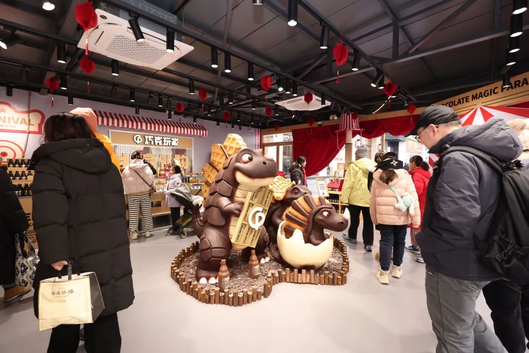 南街化身“潮流首发秀场”,集结一众年轻人青睐的品牌与热门IP,一站式满足逛、拍、玩、买全需求。李宁“龙店”快闪店携龙年限定系列惊喜亮相,将传统纹样与现代潮流设计完美融合,轻松解锁新春国潮穿搭;王府井食品商店内的巧克玩家沉浸式艺术特展颠覆想象,巧克力不再是单纯的舌尖美味,更变身可观赏、可互动、可拍照的艺术作品,带来别样体验;名创优品与迪士尼《疯狂动物城》联名店人气爆棚,朱迪、尼克等经典角色惊喜现身,限量周边引发收藏热潮;Helenemotion's潮玩集合店汇聚全球热门IP,治愈系玩偶、限定盲盒琳琅满目,每一件都成为收藏爱好者的心头好,让南街成为充满惊喜的潮流乐园。