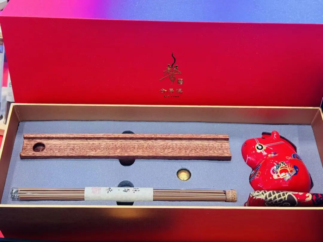 位于赵全营镇忻州营村合馨楼非遗手工坊推出的“合馨丙午香礼”礼盒,内含“顺意好礼” 琼海系列沉香打造的新春线香,“福马”造型存钱罐别致可爱,让你在假期里放慢脚步,享受片刻静谧。