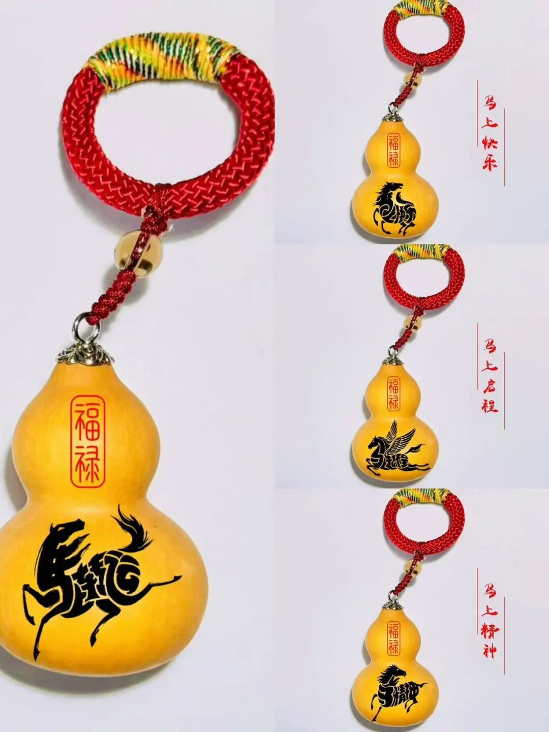 由龙湾屯镇柳庄户村葫芦牛非遗文化体验馆推出的火绘葫芦新春限定款将马年生肖元素、顺义地域文化与传统吉祥纹样融于葫芦之上,推出“马上如意”“马上有福”“马上好运”等产品,涵盖挂件、摆件、文房配饰等多款品类,让非遗福禄文化走进生活。