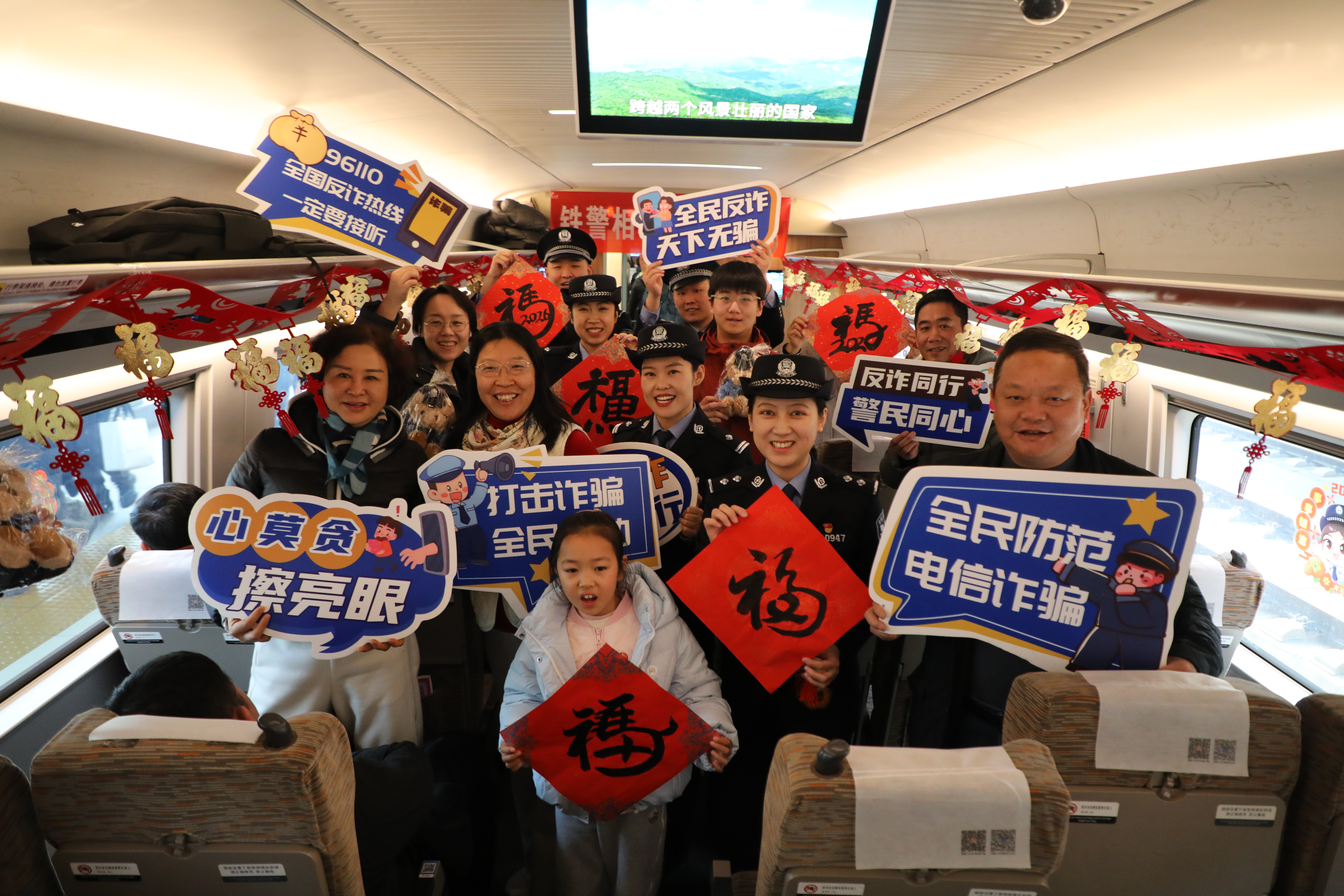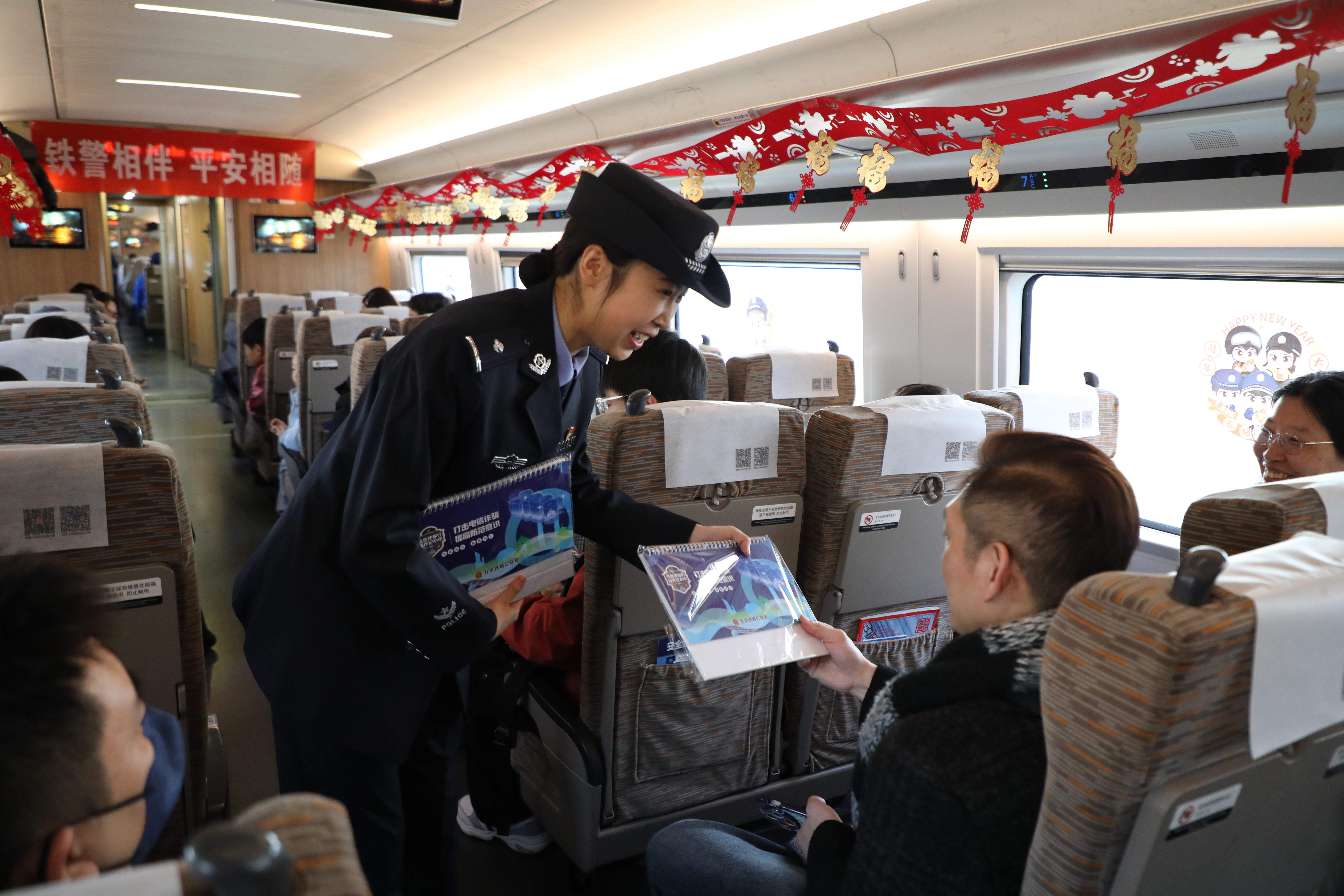 2月10日,农历北方小年。在北京南开往福州的G813次高铁列车上,一场别开生面、年味十足的“学反诈、话安全,铁警伴您过小年”主题宣传活动火热开展,为南来北往的旅客送上了一份特殊的“平安年礼”。