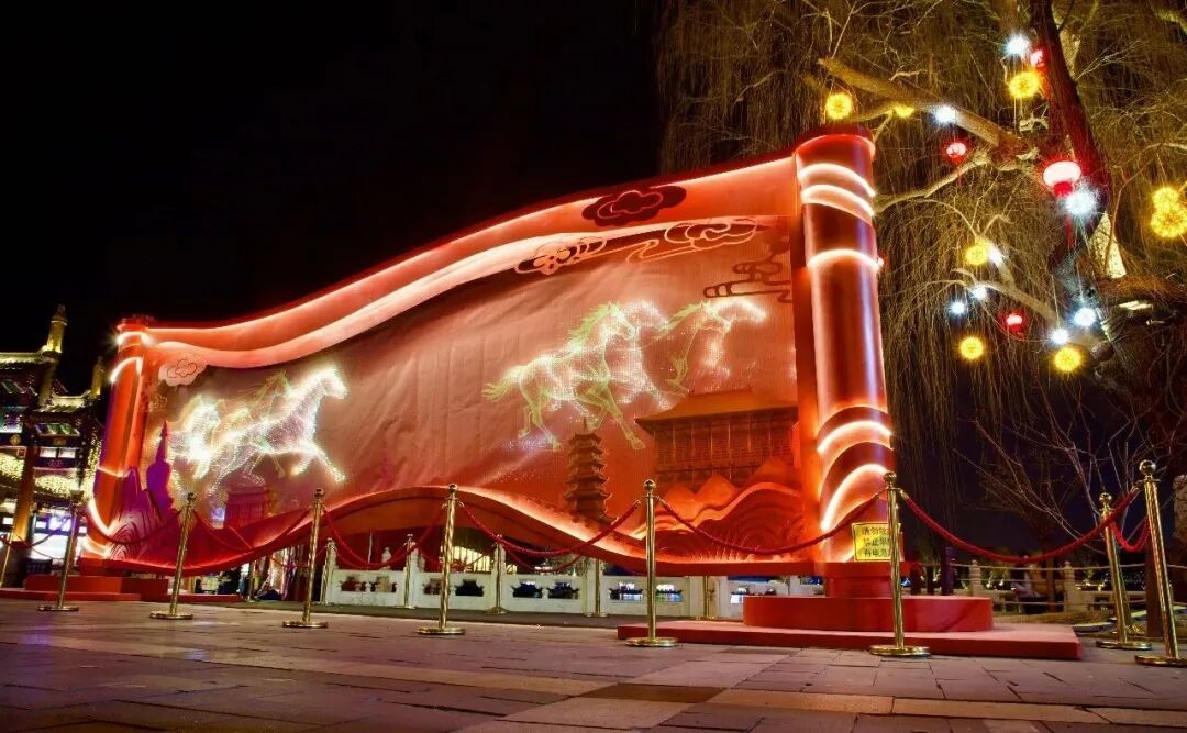 “红色特别喜庆,金色又很辉煌,不光年味很浓,更让人看了就很振奋。尤其是动态的马群,一下子让人想到徐悲鸿笔下的奔马,精神昂扬!”玄女士边说边举起手机录像。