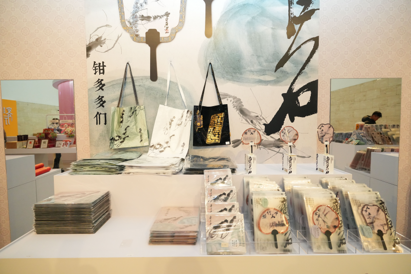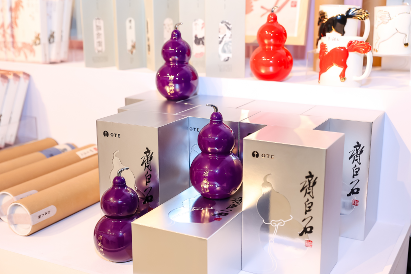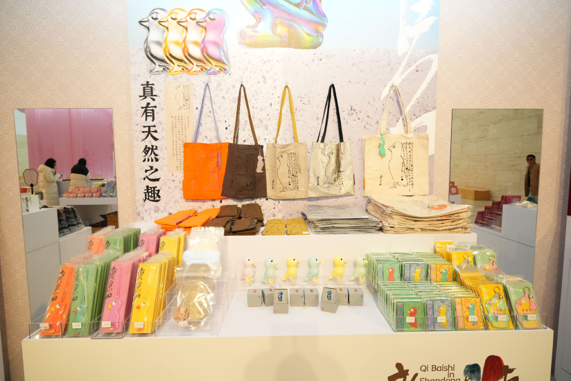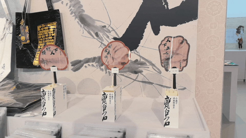 展览文创区将齐白石笔下的花鸟草虫、稚趣生机,经巧思转化后融入日常用品的研发设计,让艺术质感与生活实用相得益彰。
