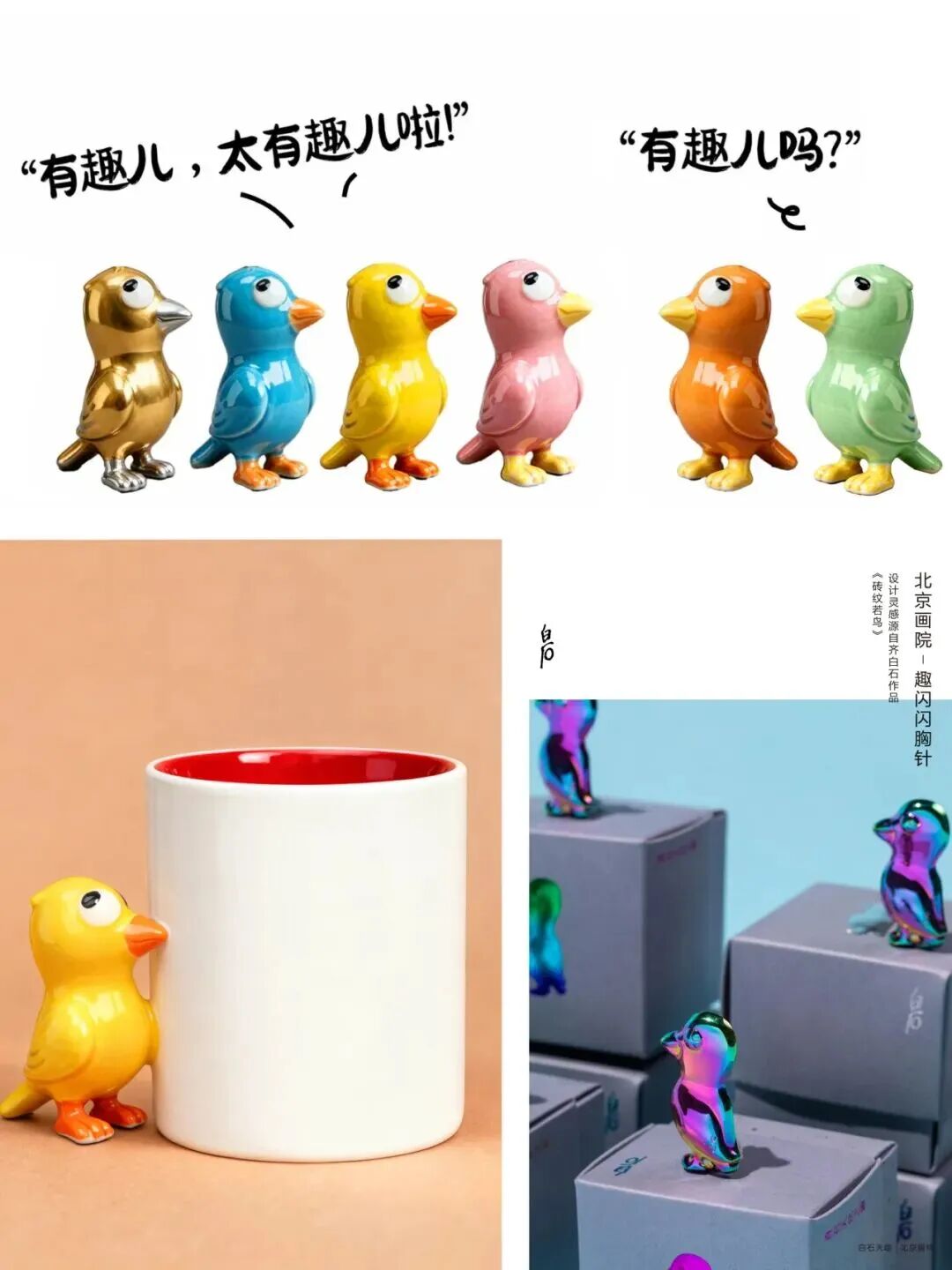 陶瓷摆件、陶瓷杯、炫彩胸针、折叠包、行李牌……每一款都带着齐白石笔下的简约灵气,让这份纯粹童趣,悄悄陪伴在生活的每一个小场景里。
