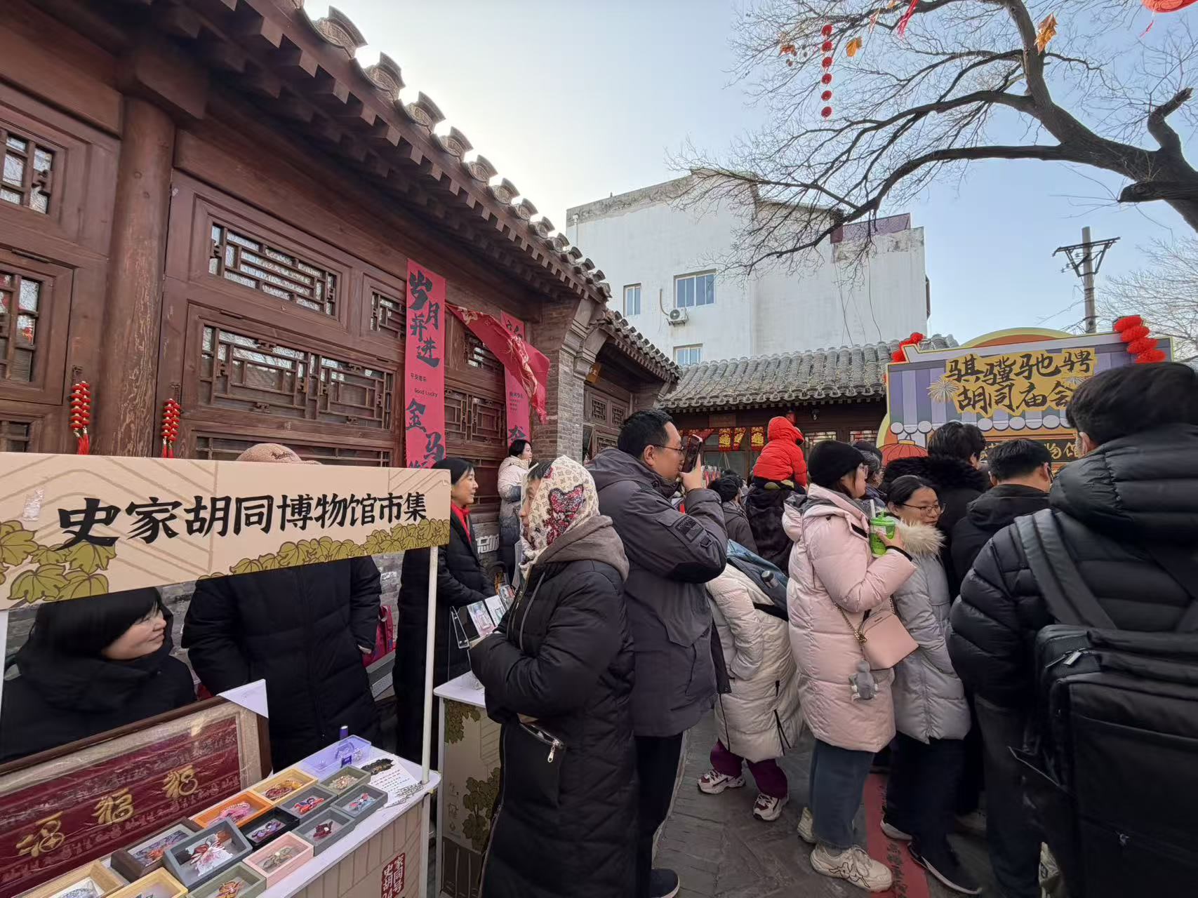 院内,“赶个大吉”年货市集人气旺。糖画、毛猴等非遗摊位吸引众多目光。博物馆新推出的卡通形象“史小院”“史小园”,成了合影热门。新设置的集章打卡路线也备受青睐,人们手持特制集章册,在“马上有福”“马上好运”等互动点间穿梭,盖下一个个寓意吉祥的图案,也存下了一份对新年的美好期盼。