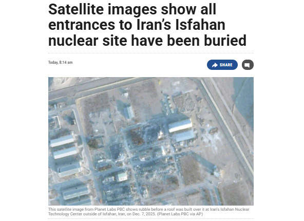 据美联社、《以色列时报》当地时间10日报道,华盛顿科学与国际安全研究所表示,卫星图像显示,通往伊朗伊斯法罕核设施的所有隧道入口已被泥土掩埋。该研究所长期关注伊朗核设施,并表示8日拍摄的卫星图像显示,其中两个入口已完全被覆盖,而最北端的第三个入口还增设了“额外被动防御措施”。该组织称,已不再观测到隧道入口有车辆活动迹象。研究所认为,此举显示伊朗担忧该设施可能遭受美国或以色列(或两国联合)的军事打击或突袭。