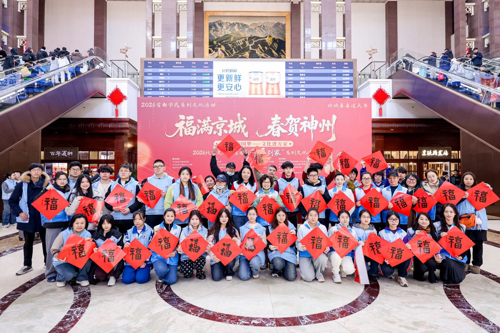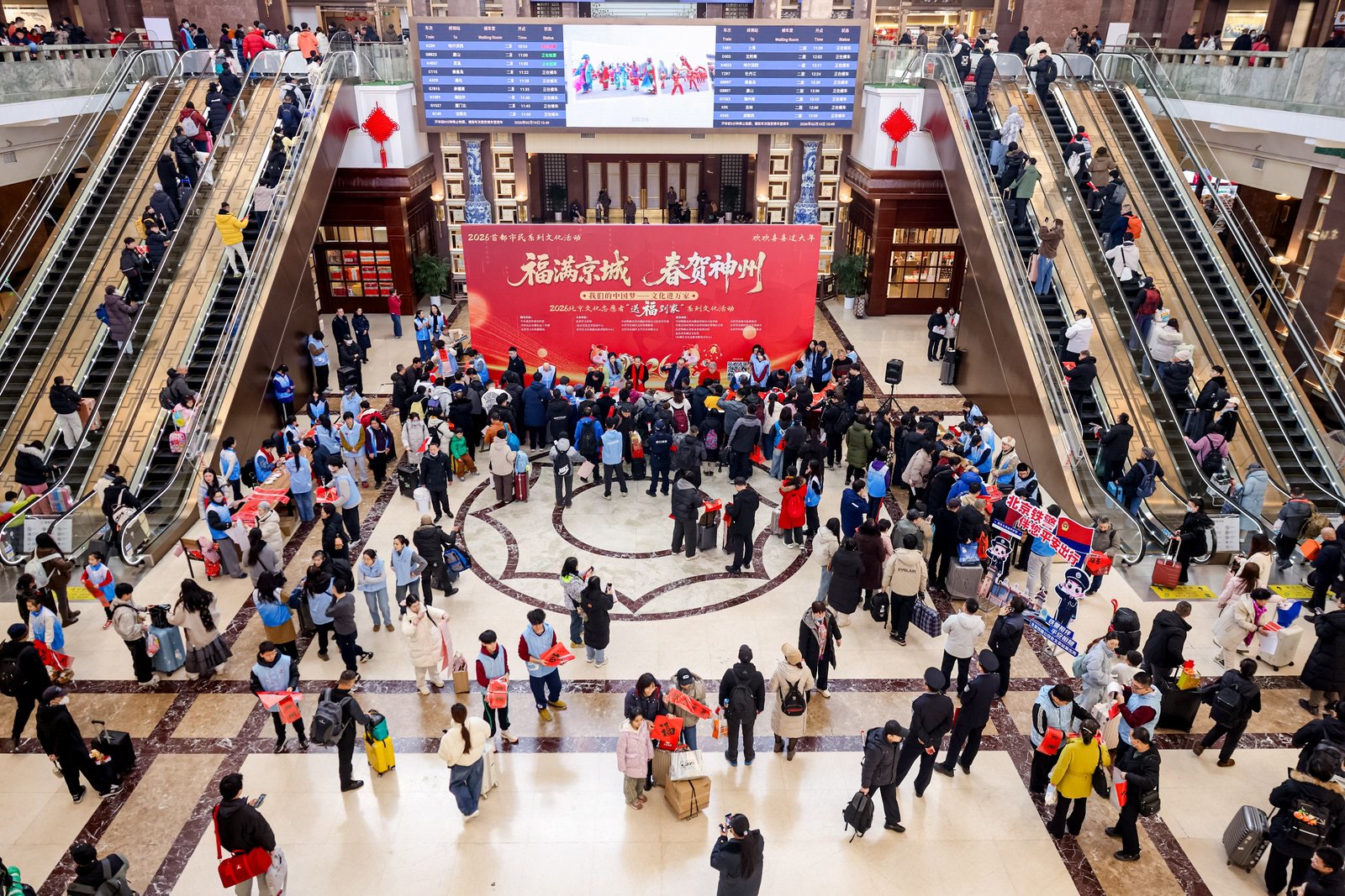 看演出、体验非遗活动、顺便还能逛个艺术展……2月10日上午10时,北京站一楼候车大厅内年味浓郁、暖意融融,“福满京城 春贺神州”2026年北京文化志愿者“送福到家”系列文化活动启动仪式在此启幕。