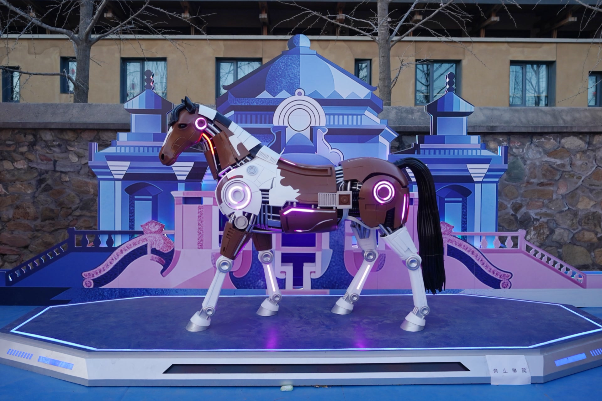 街头巷尾,郎世宁笔下的御马“跃”出绢本,化作多元艺术景致,或立于街旁,或雕于墙面,或静立,或奔腾,与古街风貌相映成趣。