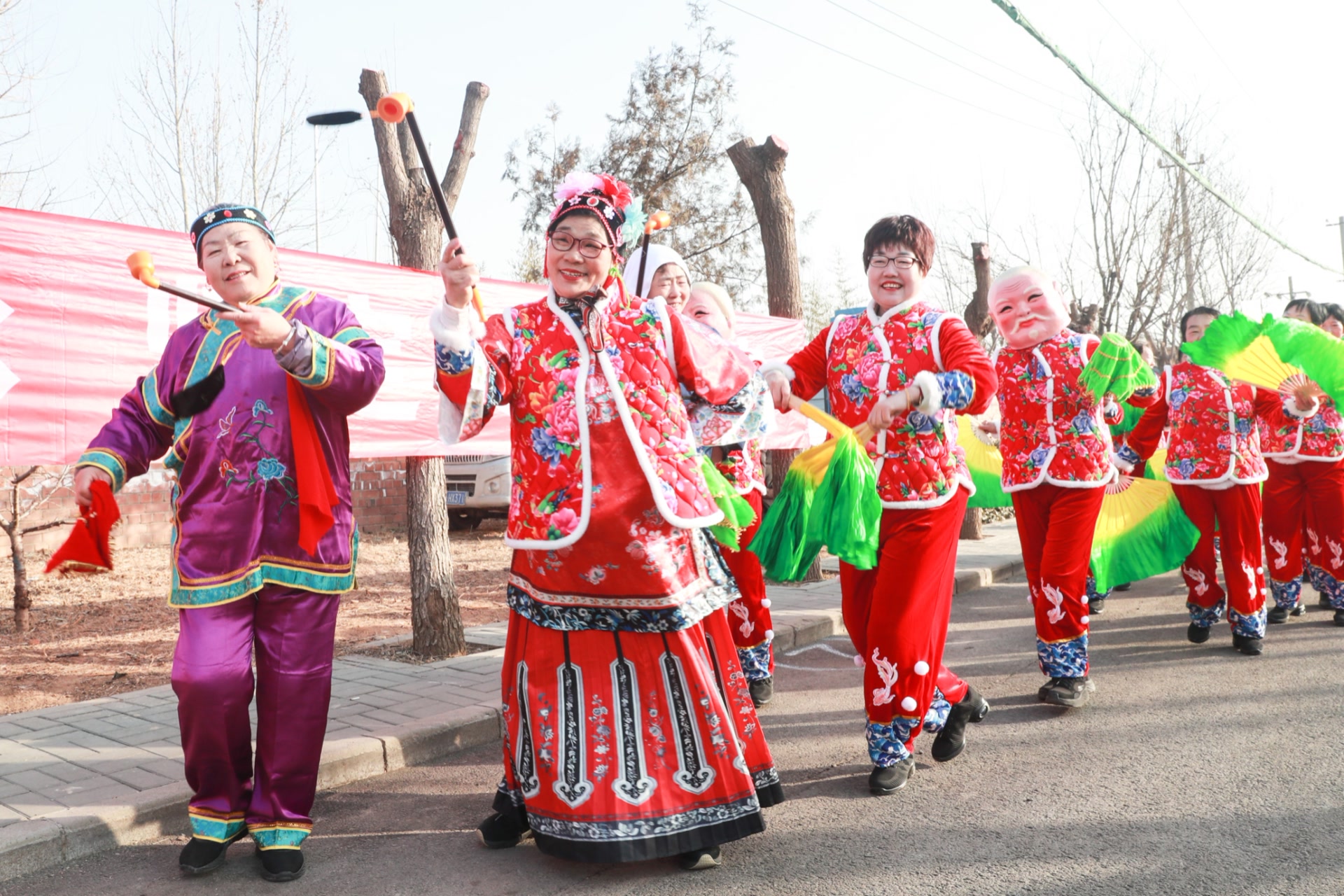 上午9时30分,锣鼓齐鸣——今年的小年俗活动增设了民俗展演走街环节,来自苏家坨镇的11支表演队伍参与。这边是前沙涧少林子弟棍会,或追逐、或对抗,一招一式,棍子在手中挥动得虎虎生风。那边是秧歌队,扮相丰富,推车老汉、拉车姑娘,讲述苏家坨的风土人情。来自安阳佳苑社区的鱼灯表演,队员们身着锦鲤服饰,舞动着亲手制作的鱼灯“游”起来,引得人们纷纷拍照。