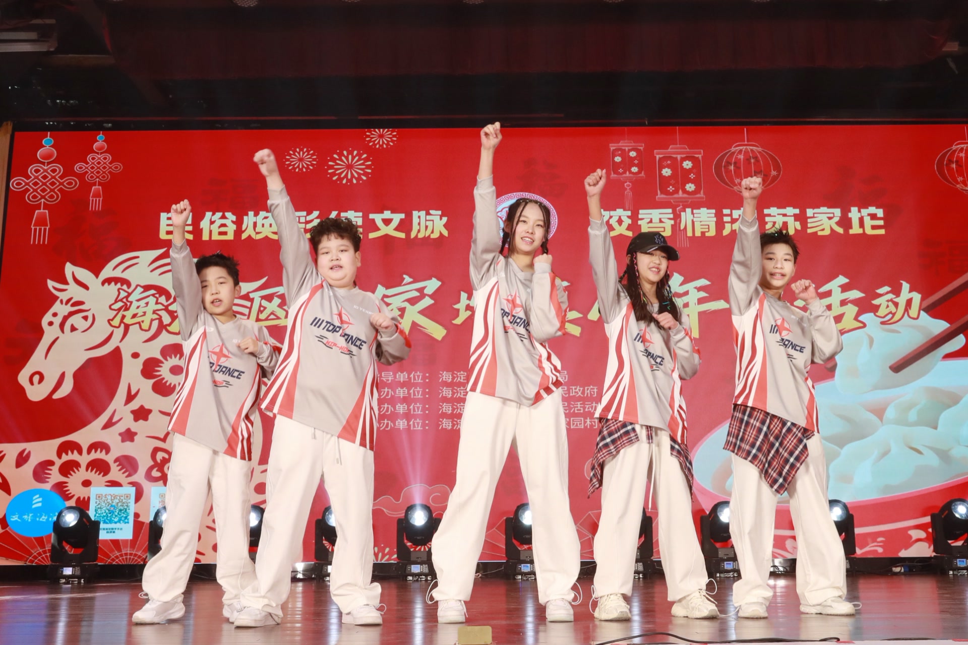 室外的民俗表演令人流连忘返,室内的歌舞表演同样热闹非凡。舞蹈《骏驰九州》跳出了新春的昂扬气象,孩子们带来的街舞《闹天宫》展现了青少年对新年的热烈期盼,歌伴舞《给祖国拜年》和朗诵《读中国》为祖国送上新春的祝福……表演节目的都是苏家坨镇的老百姓,大家一起为新年助兴。